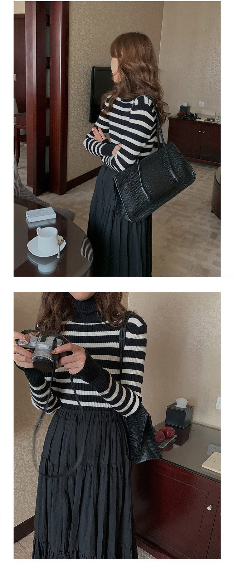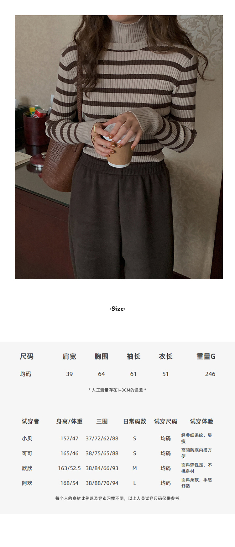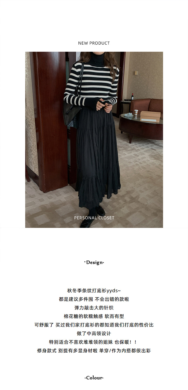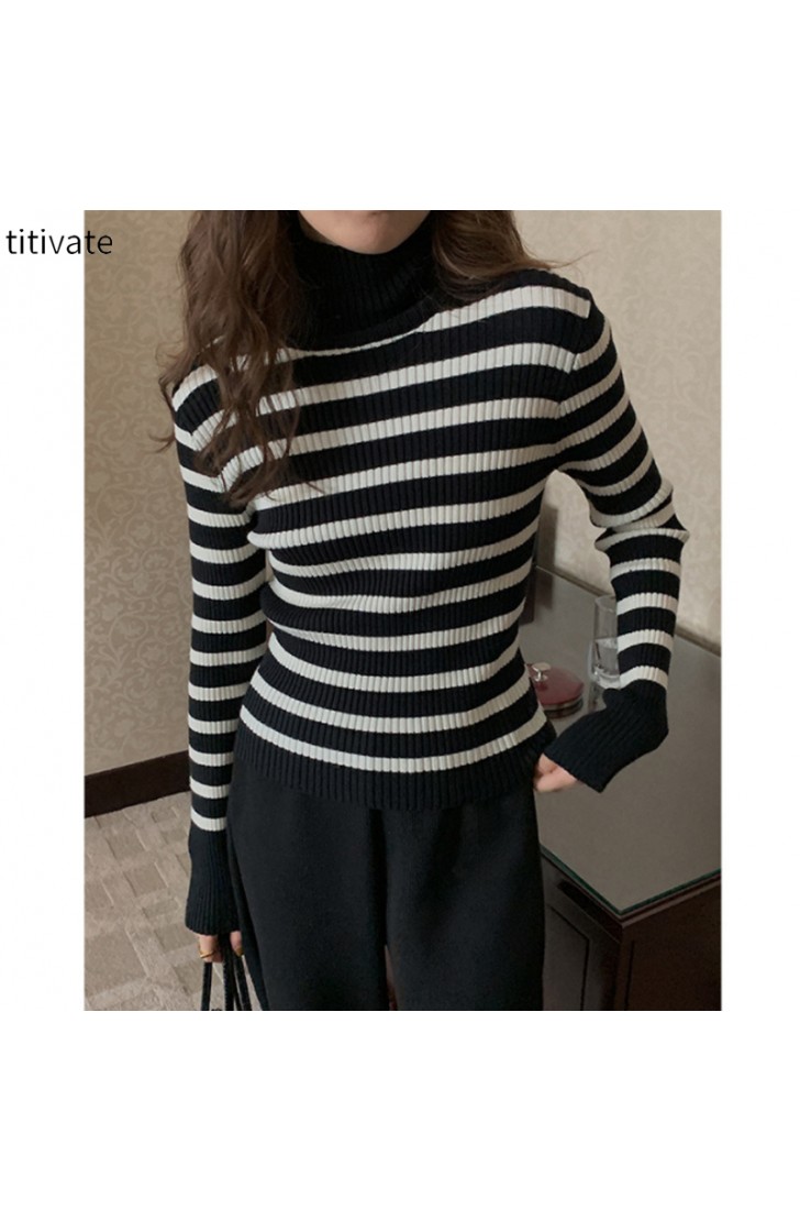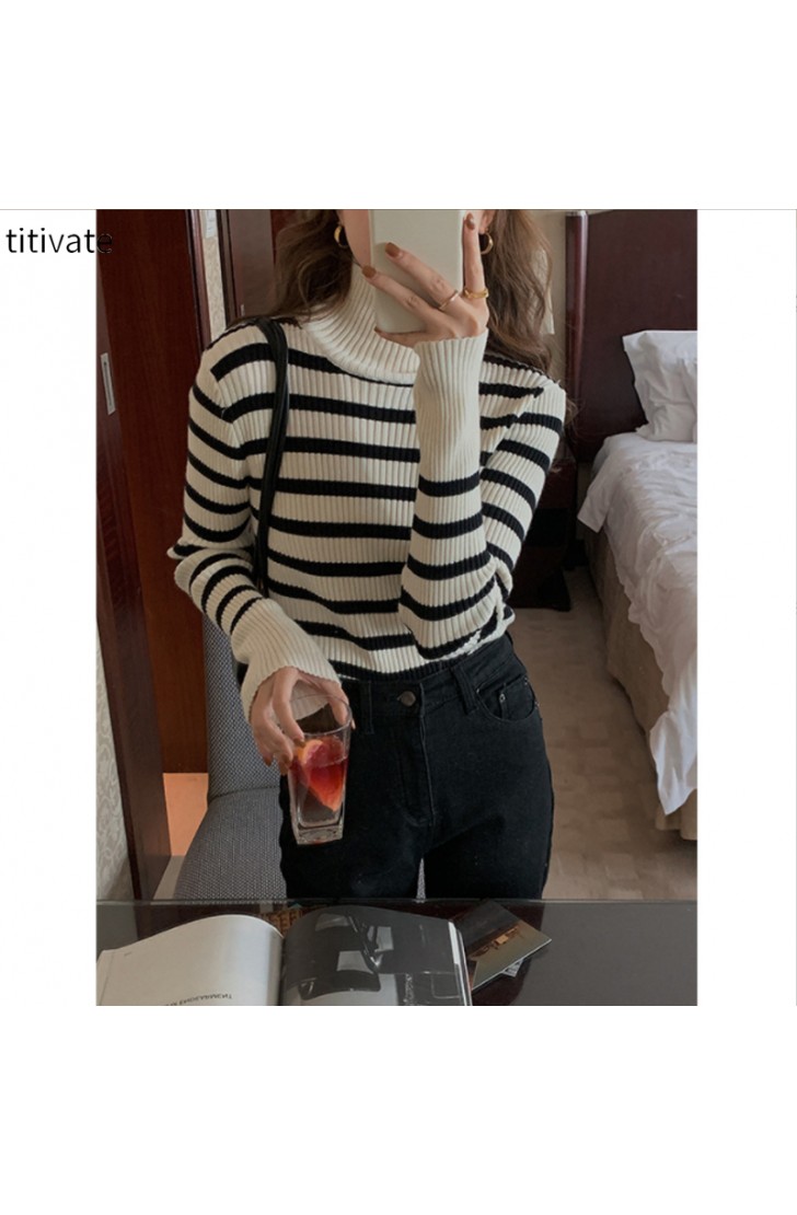 titivate 高领修身条纹毛衣女2021冬季新款复古慵懒套头上衣