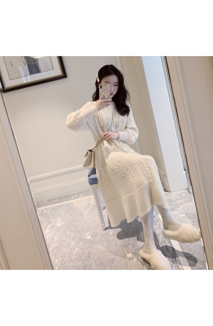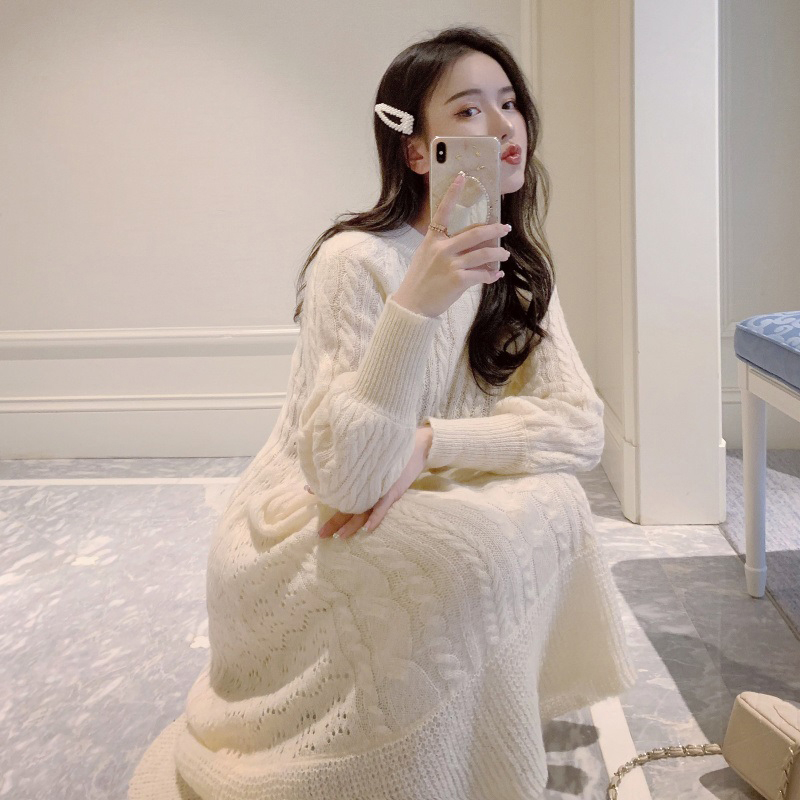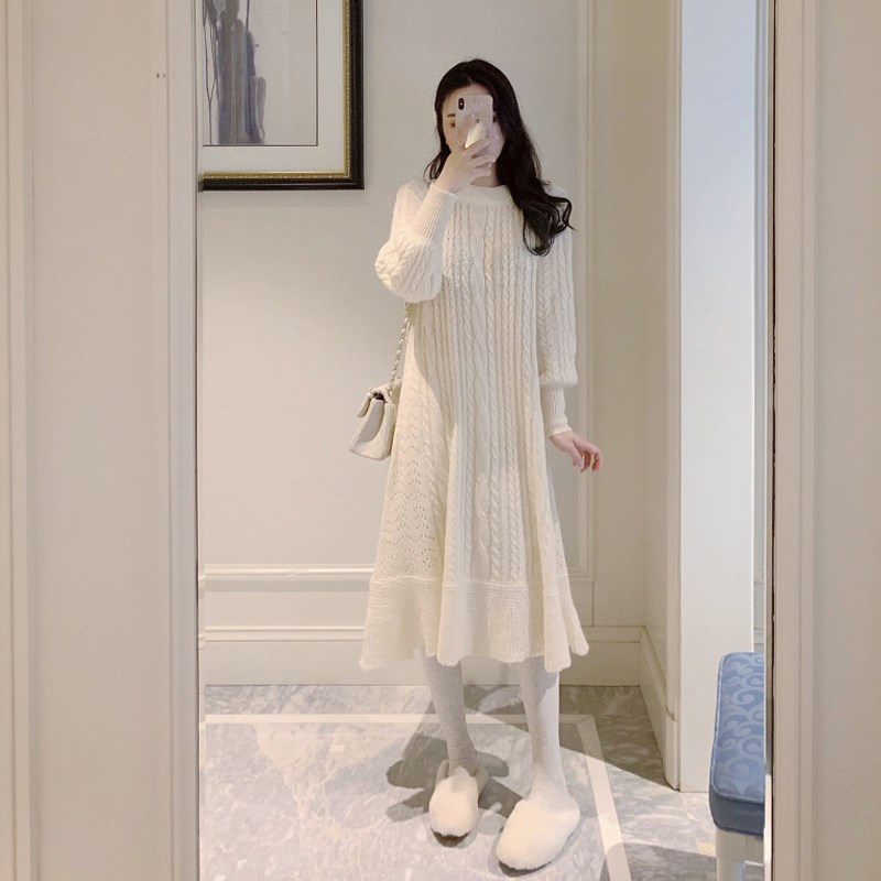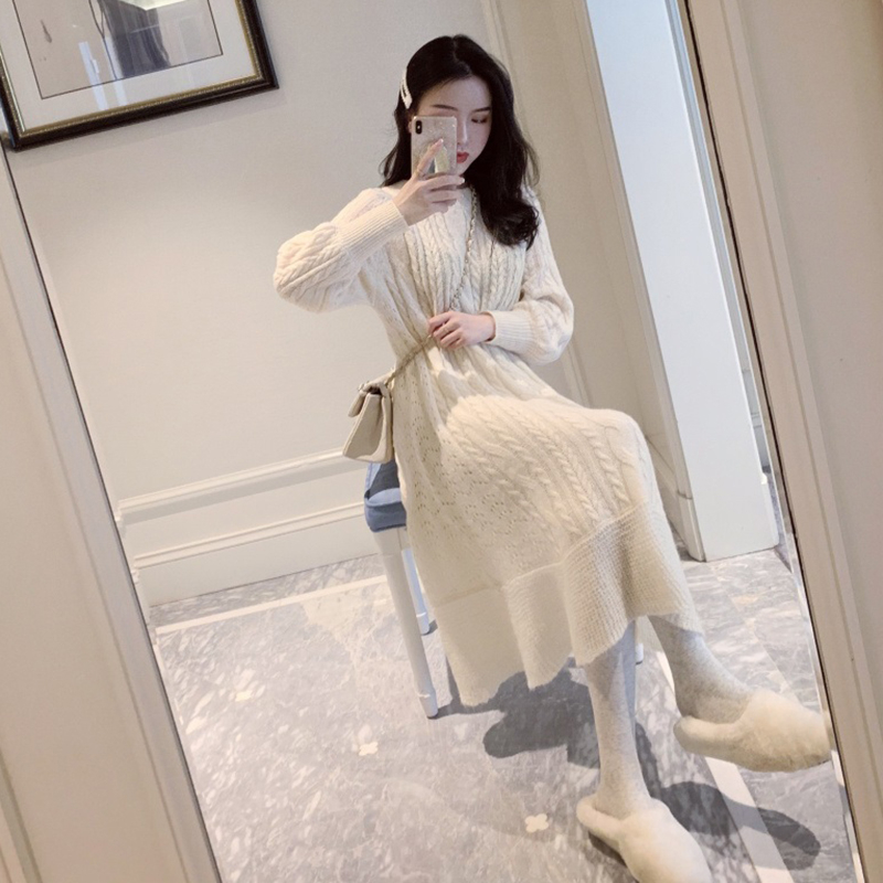 titivate2020初秋新款高冷御姐成熟泫雅风ins中长款过膝毛衣连衣裙子秋冬