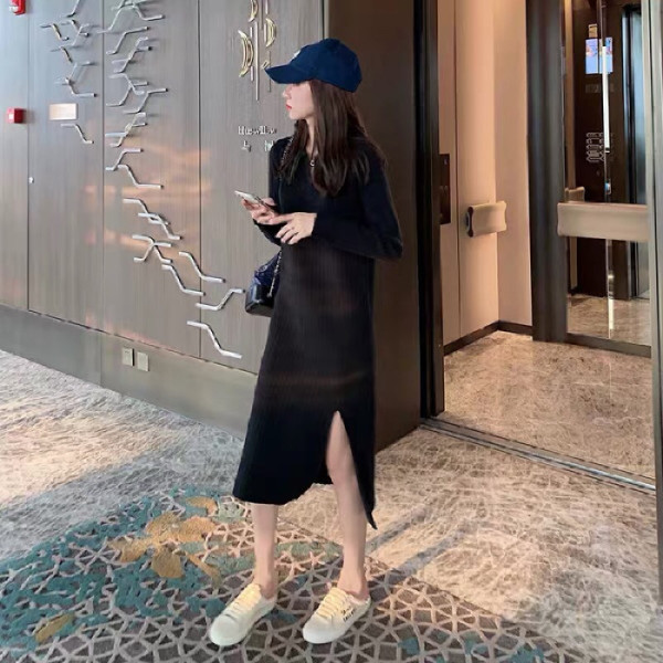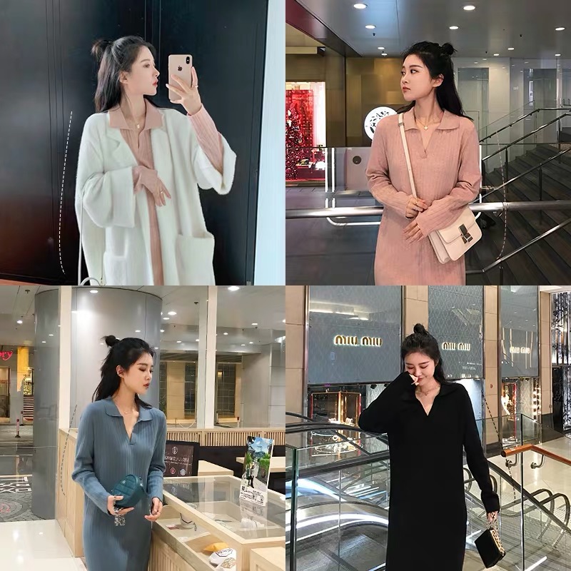 titivate2020秋冬新款女装森女系长袖毛衣裙少女风成熟轻熟风温柔连衣裙子