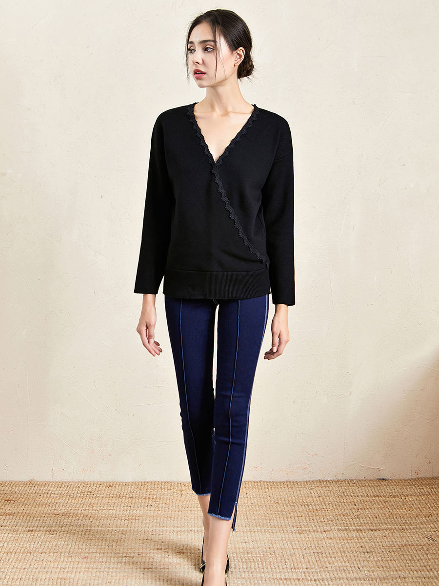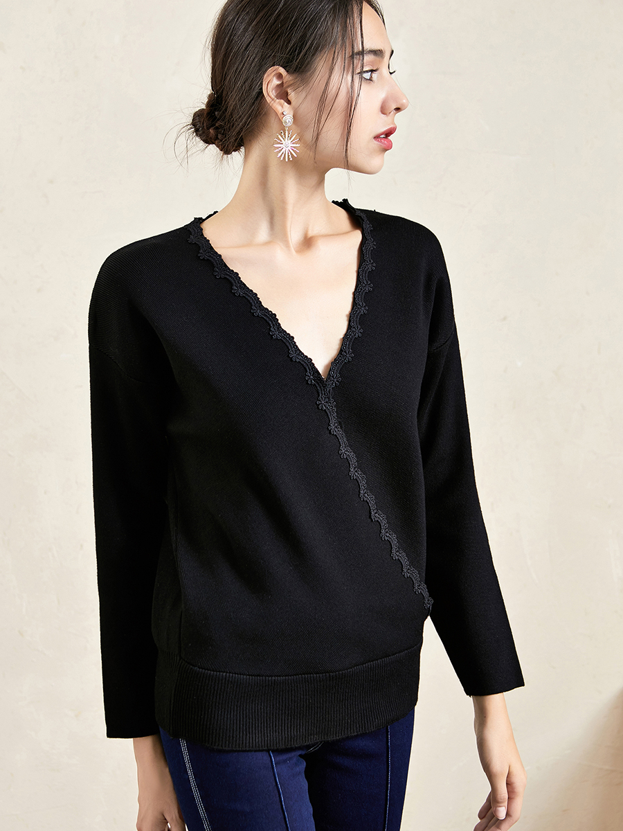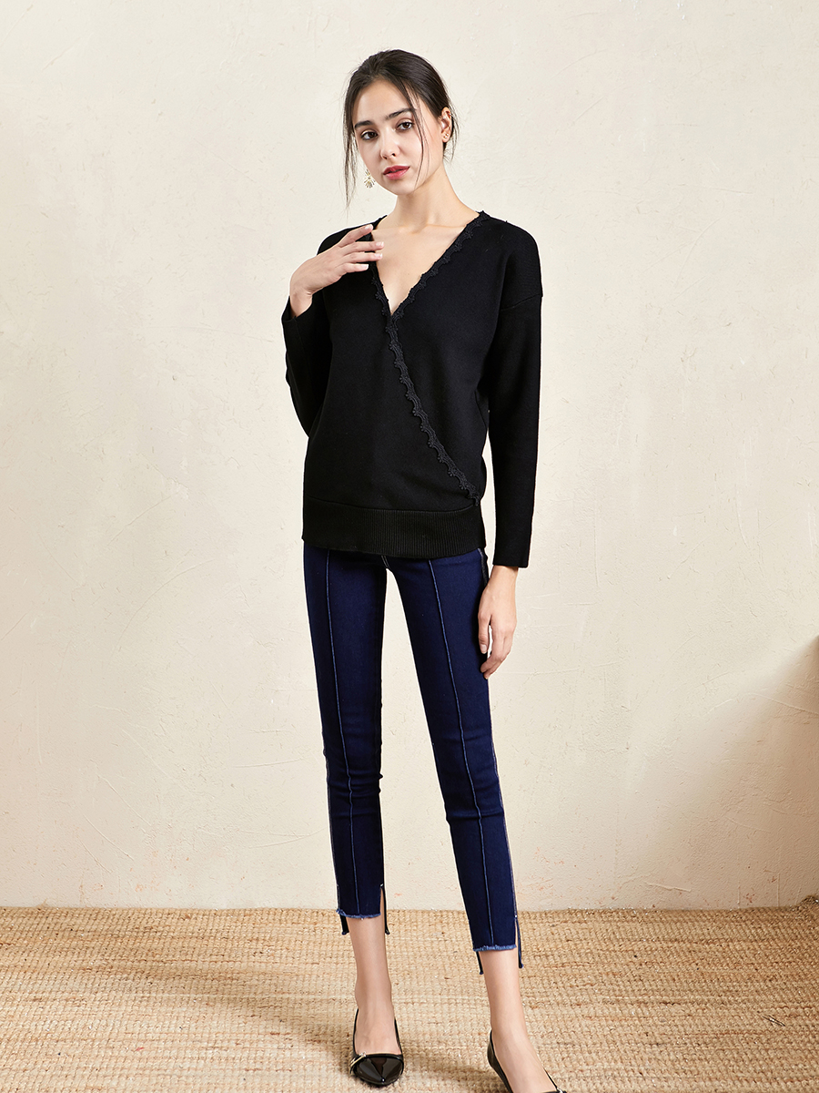 titivate毛衣2020新款秋冬v领毛衣女宽松慵懒风显瘦百搭针织衫