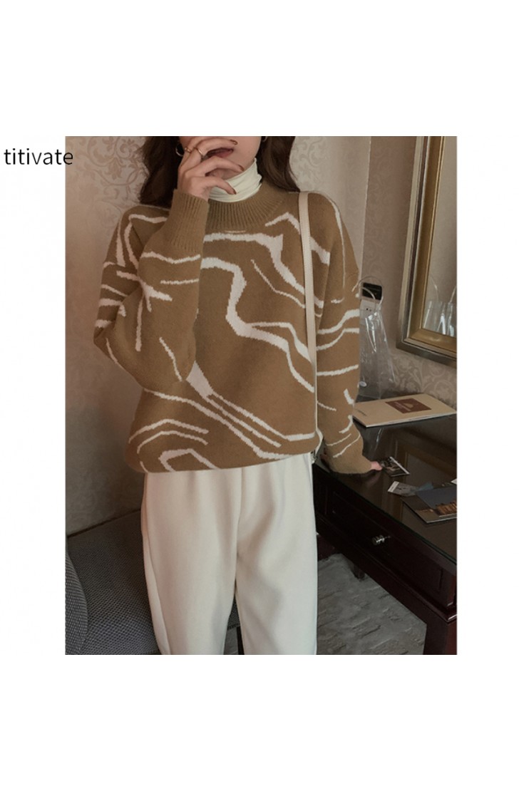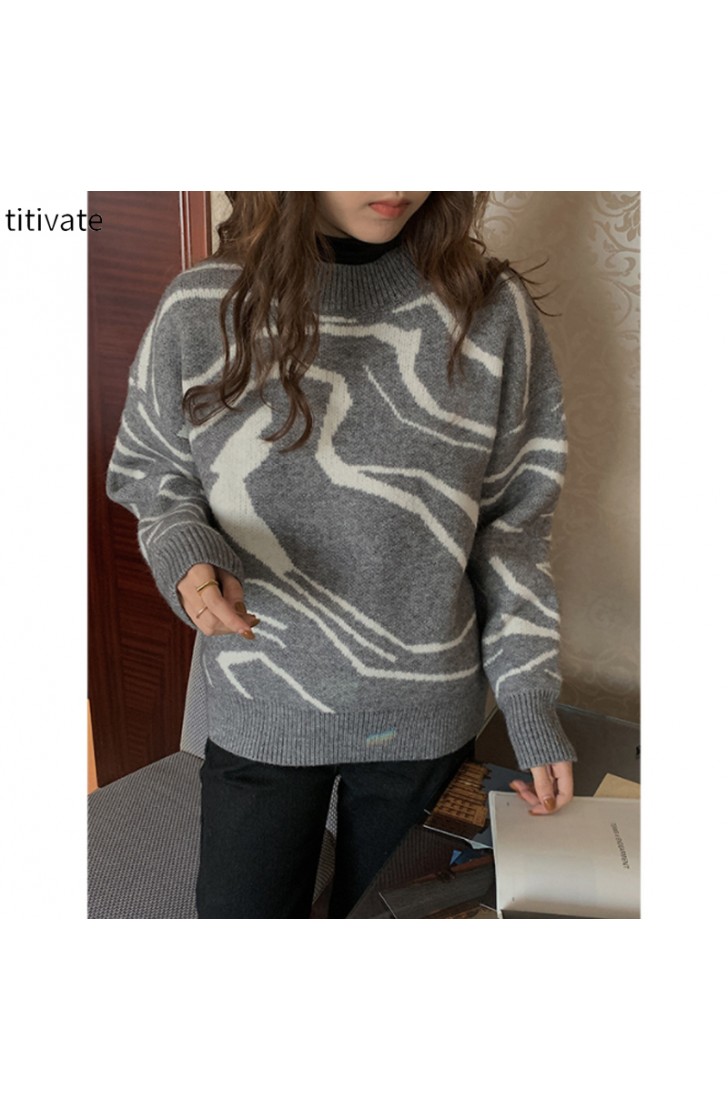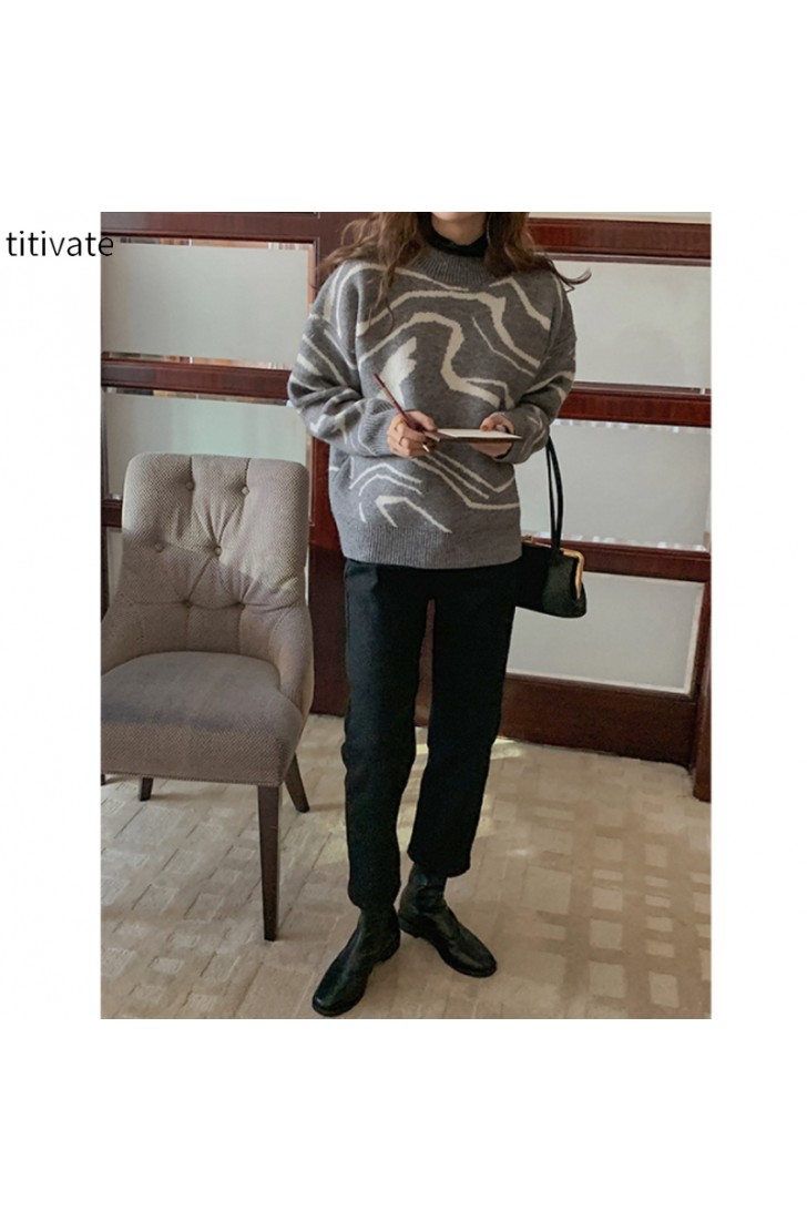 titivate复古羊毛衣女2021冬季新款圆领慵懒风宽松针织上衣