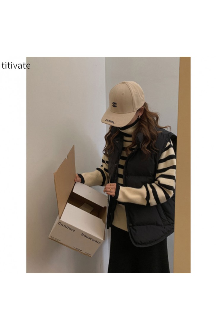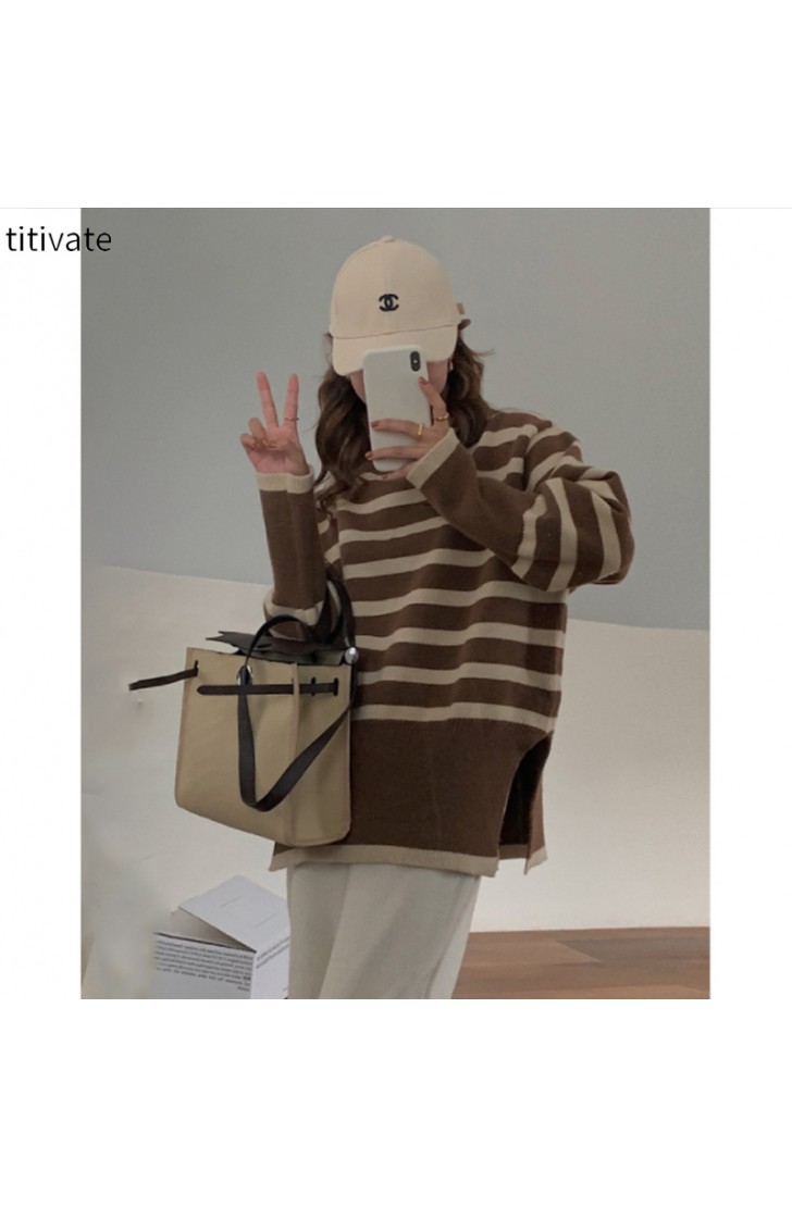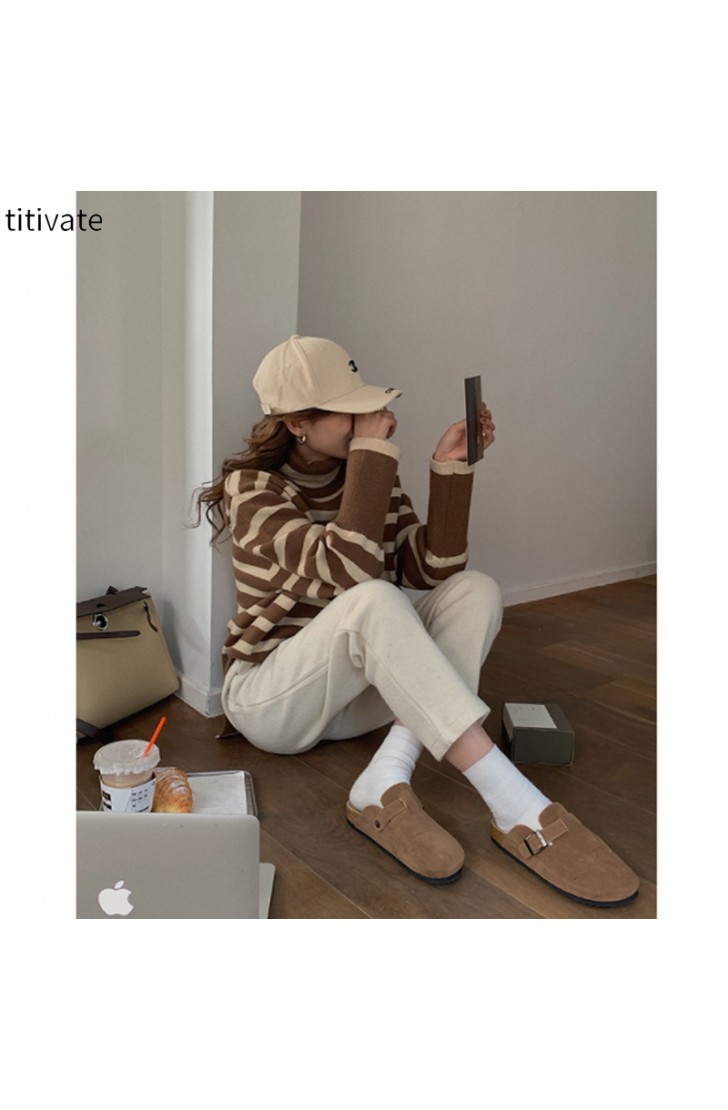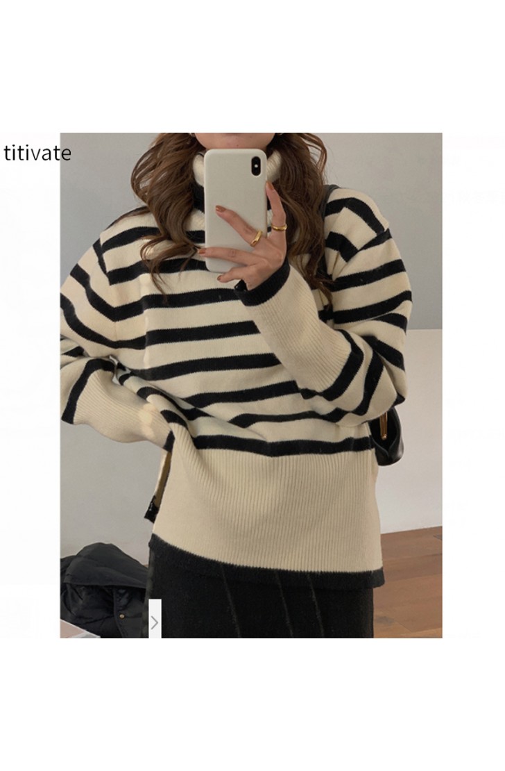 titivate复古高领条纹毛衣女2021秋冬季新款慵懒风套头上衣