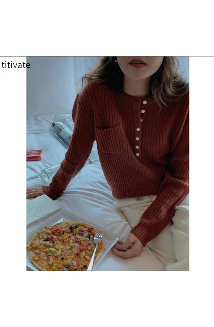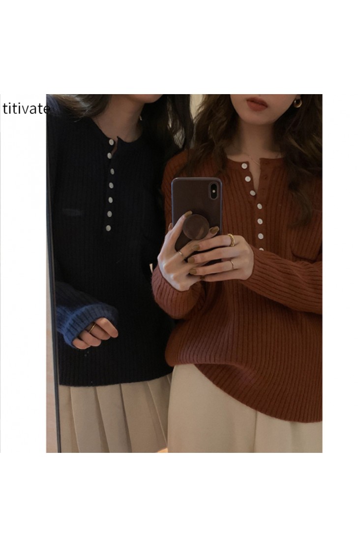 titivate羊毛针织衫女慵懒风2021秋冬新款简约圆领长袖上衣