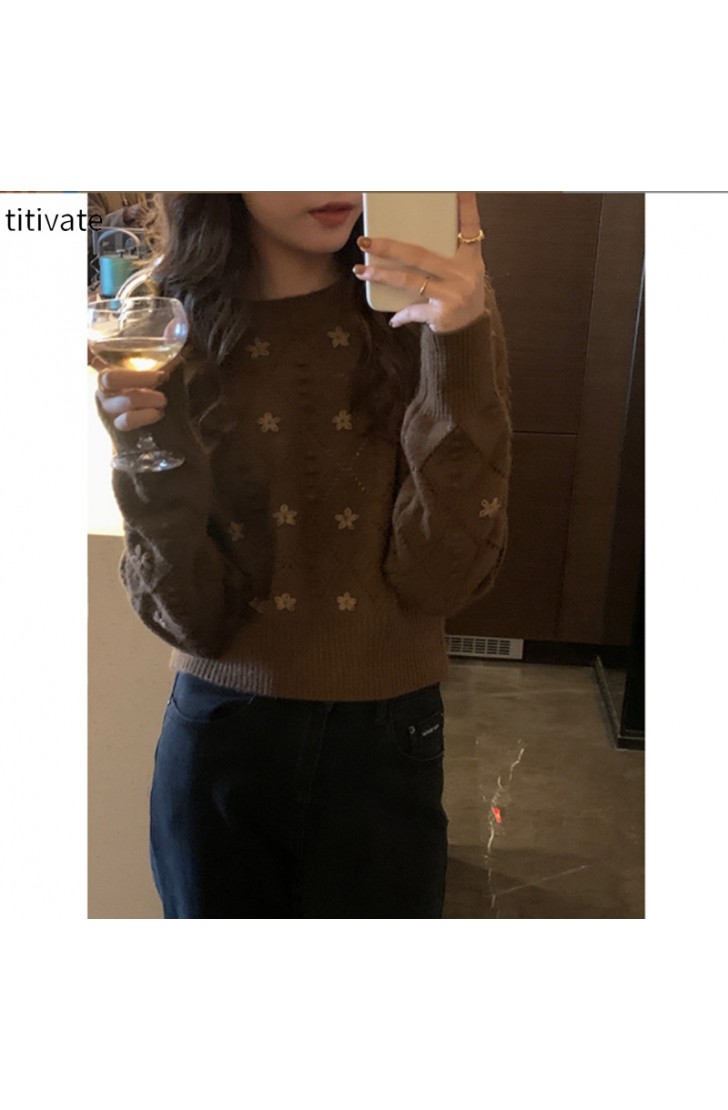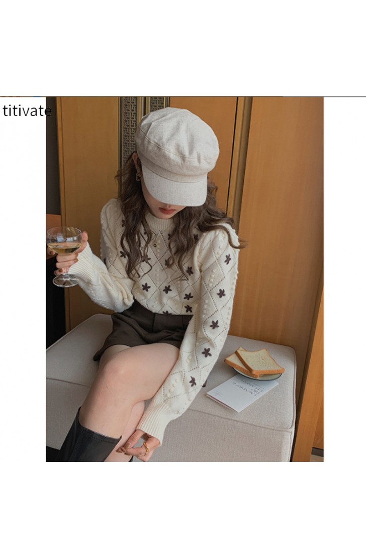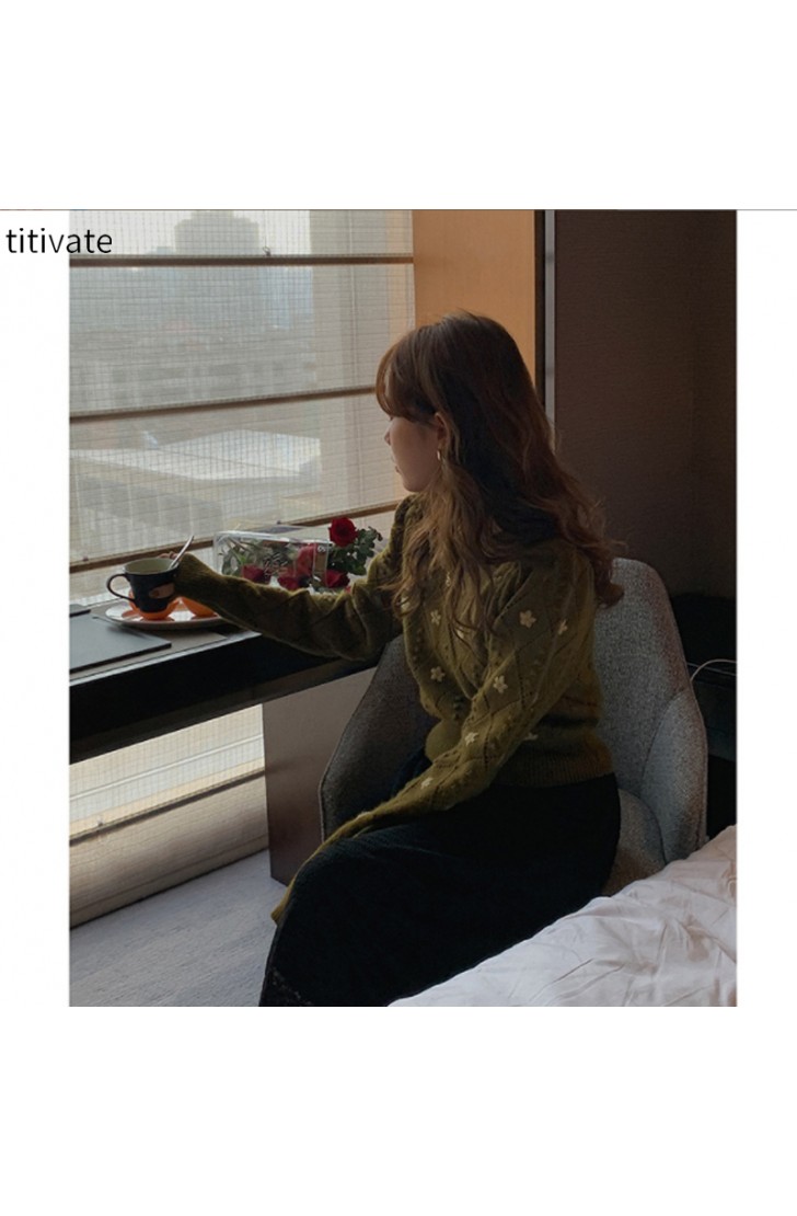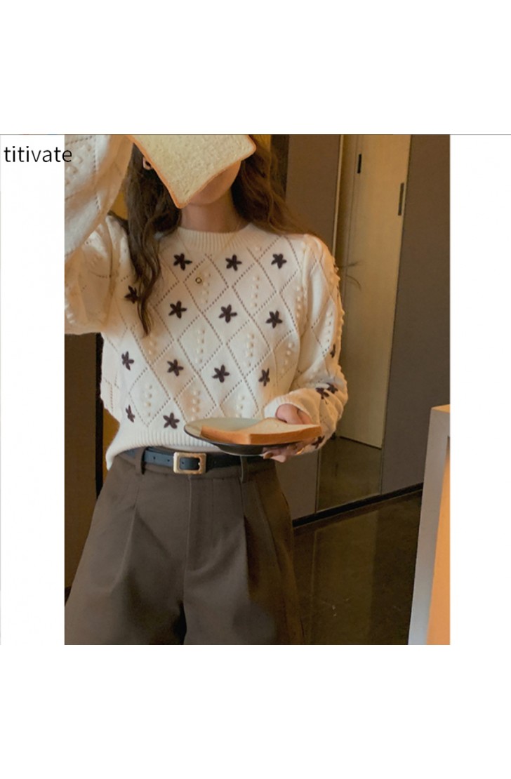 titivate毛衣外套女慵懒风2021年秋冬新款镂空圆领套头上衣