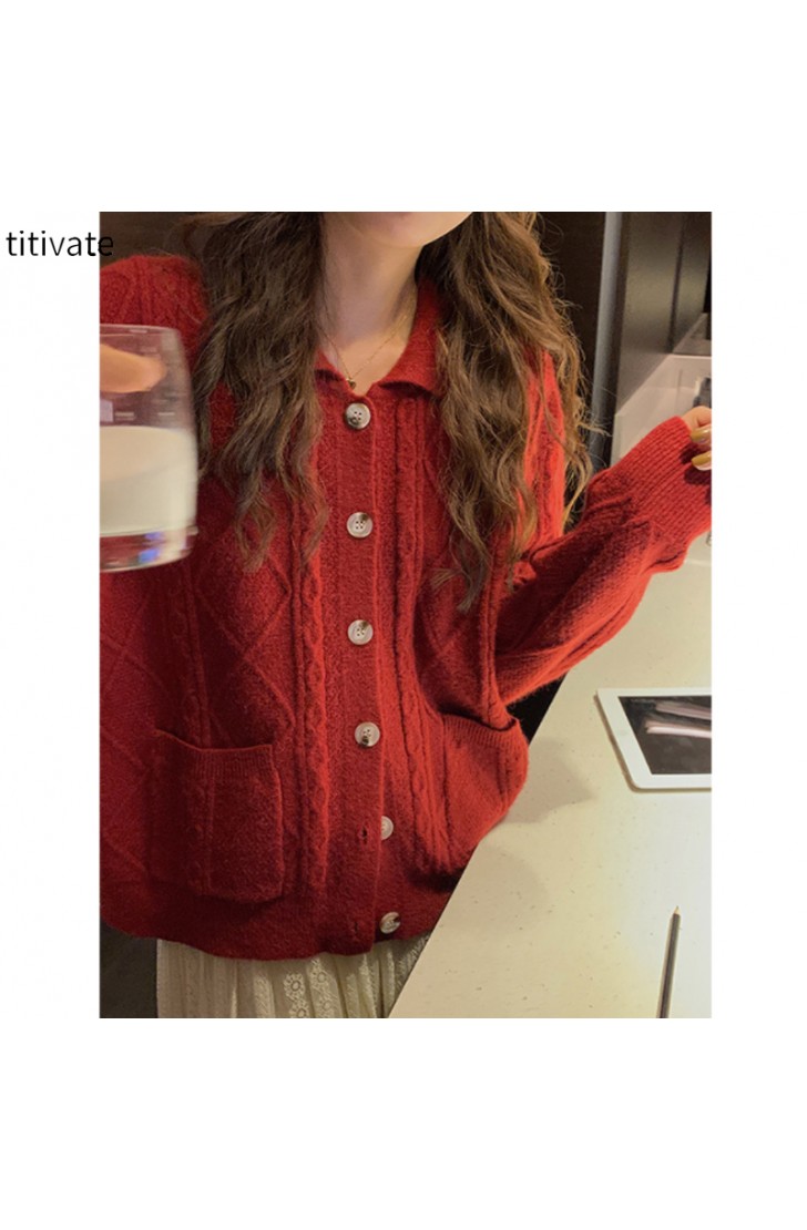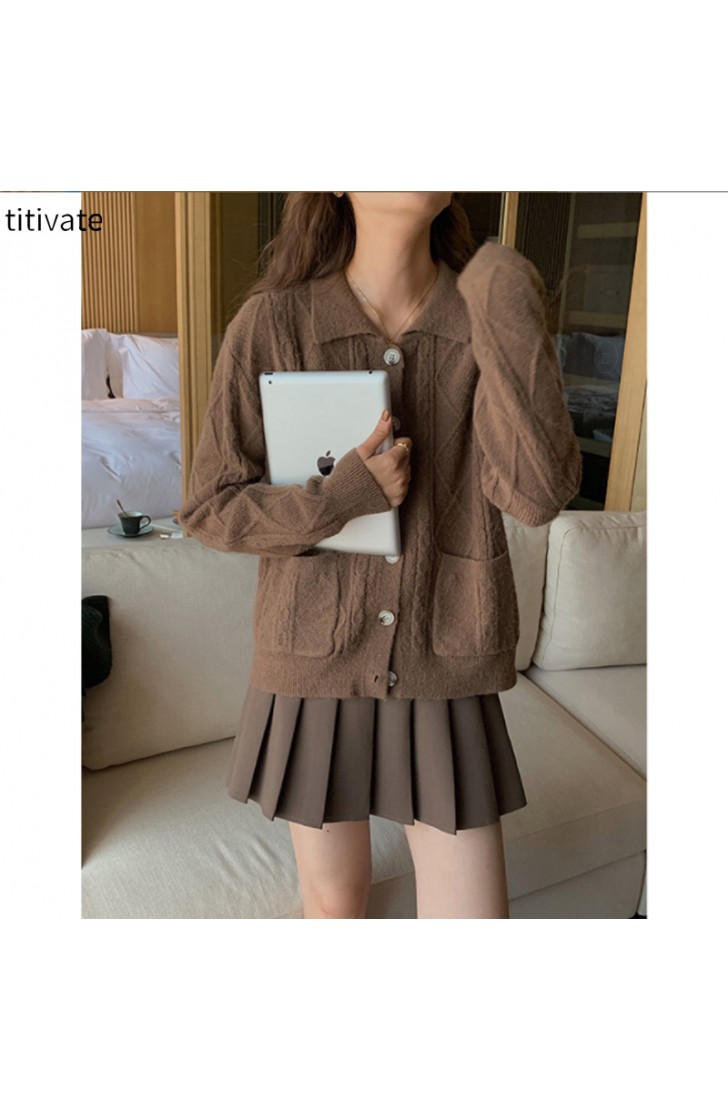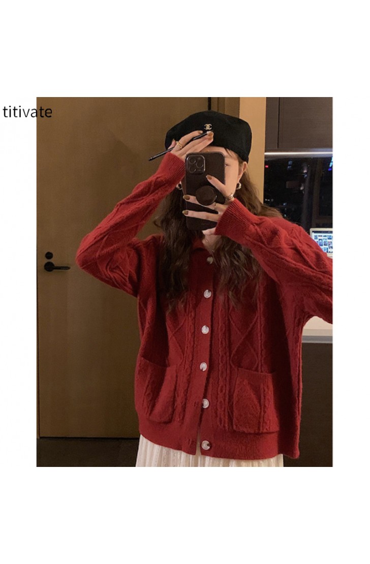 titivate复古羊绒衫女装2021秋冬季新款宽松毛针织上衣开衫