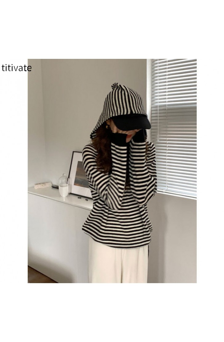 titivate连帽条纹卫衣女2021秋季新款宽松显瘦外套长袖上衣