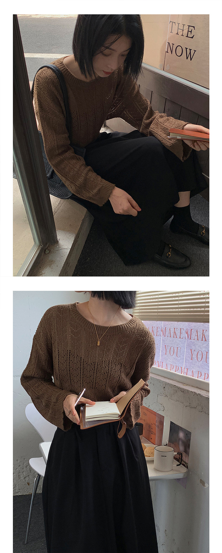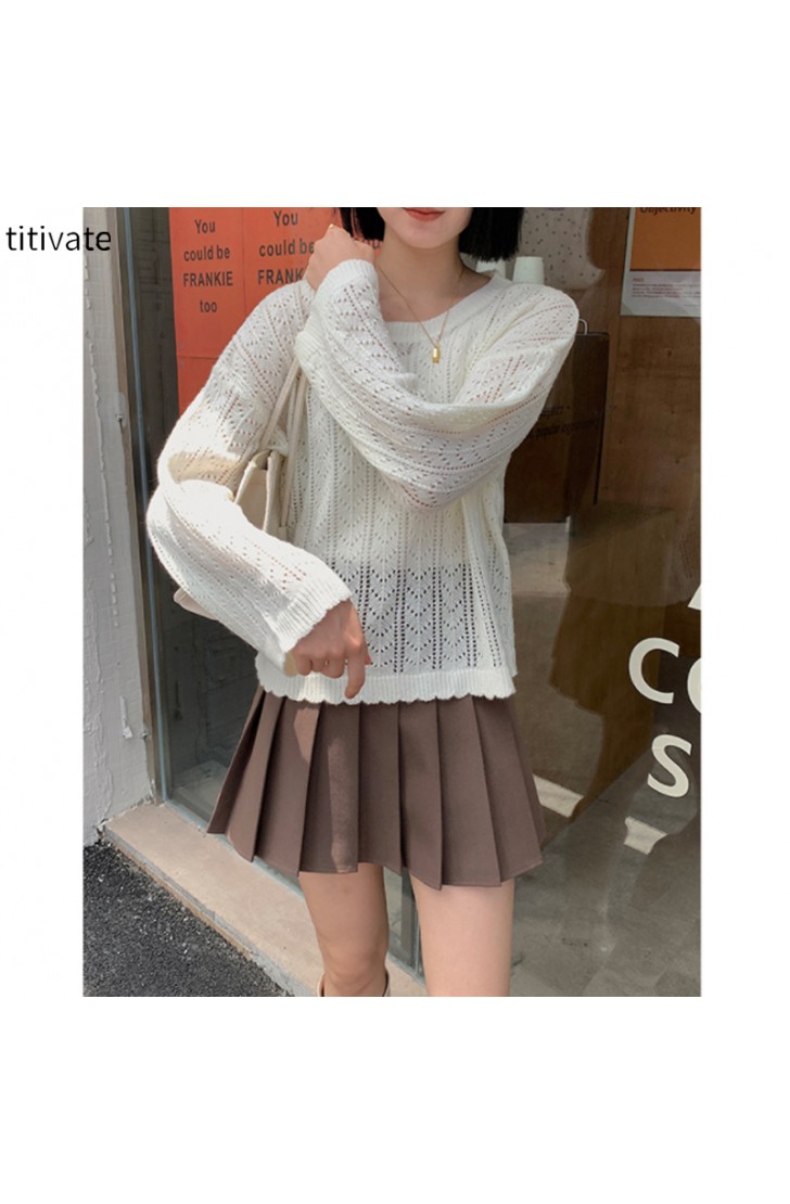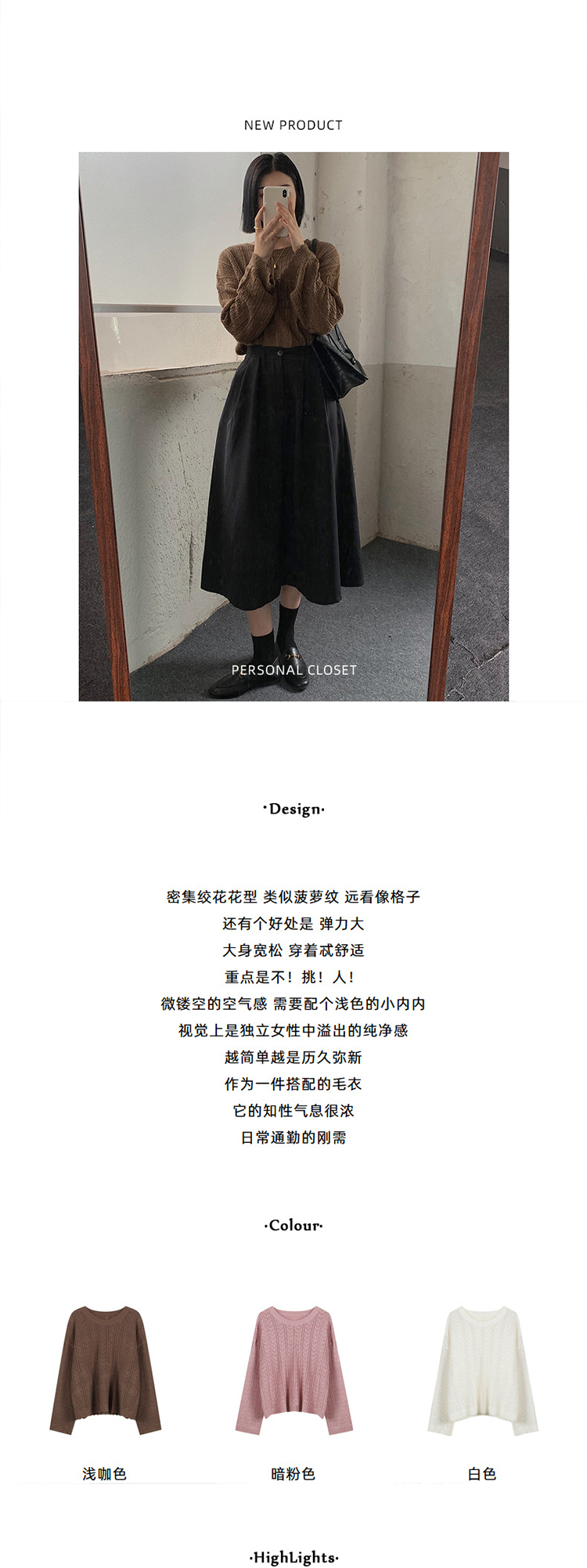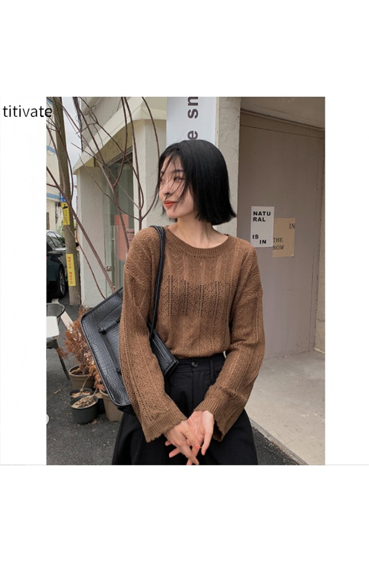 titivate秋季新款慵懒宽松镂空针织衫女2021V领长袖开叉上衣