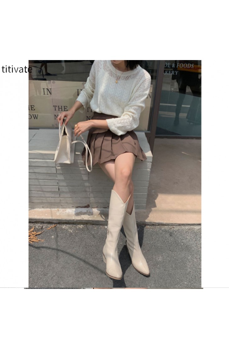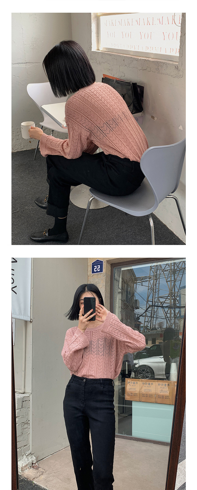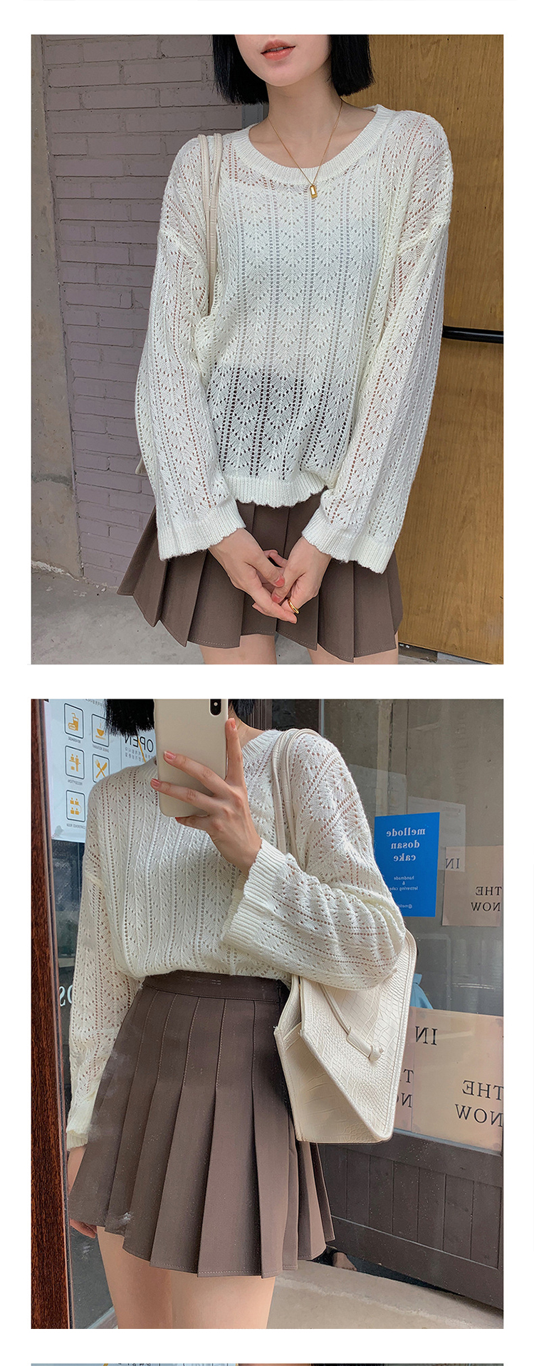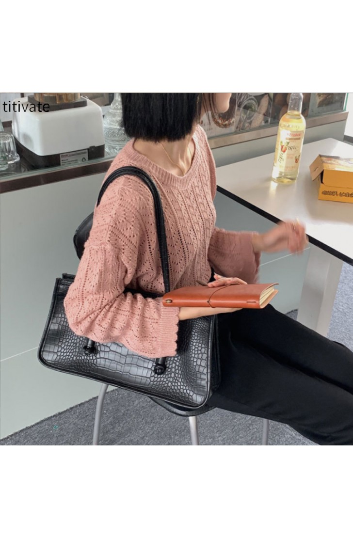 titivate秋季新款慵懒宽松镂空针织衫女2021V领长袖开叉上衣