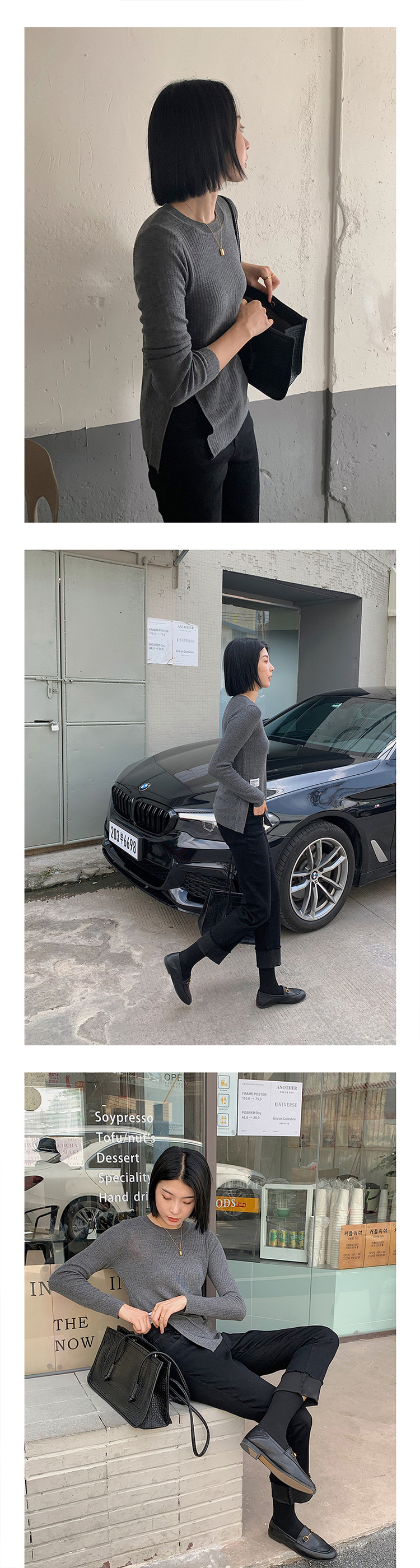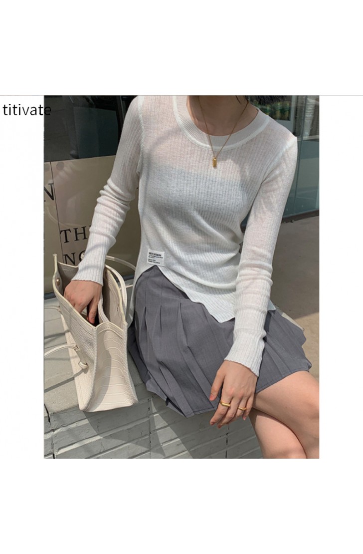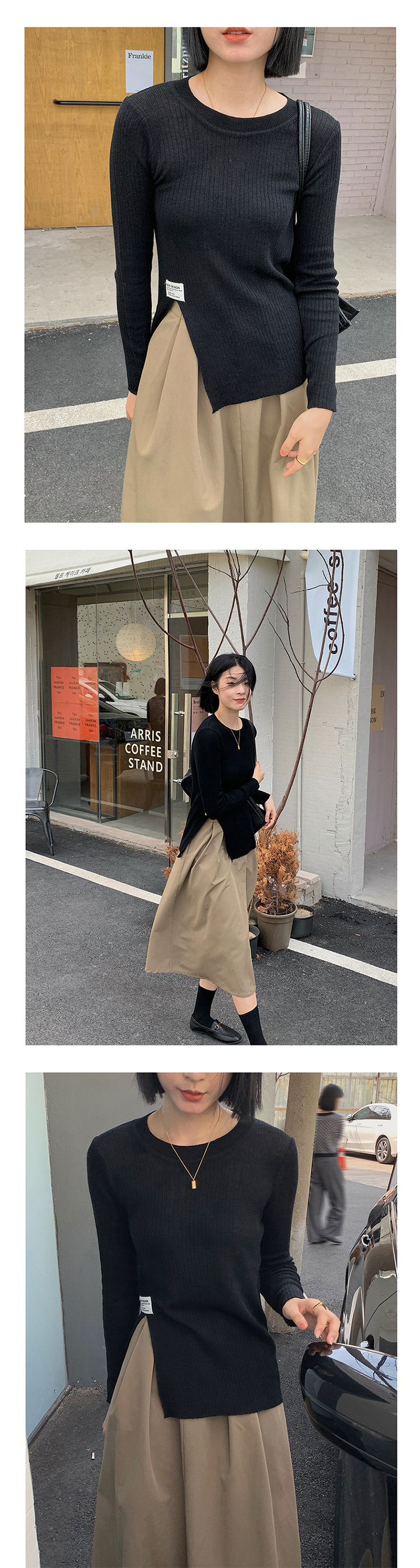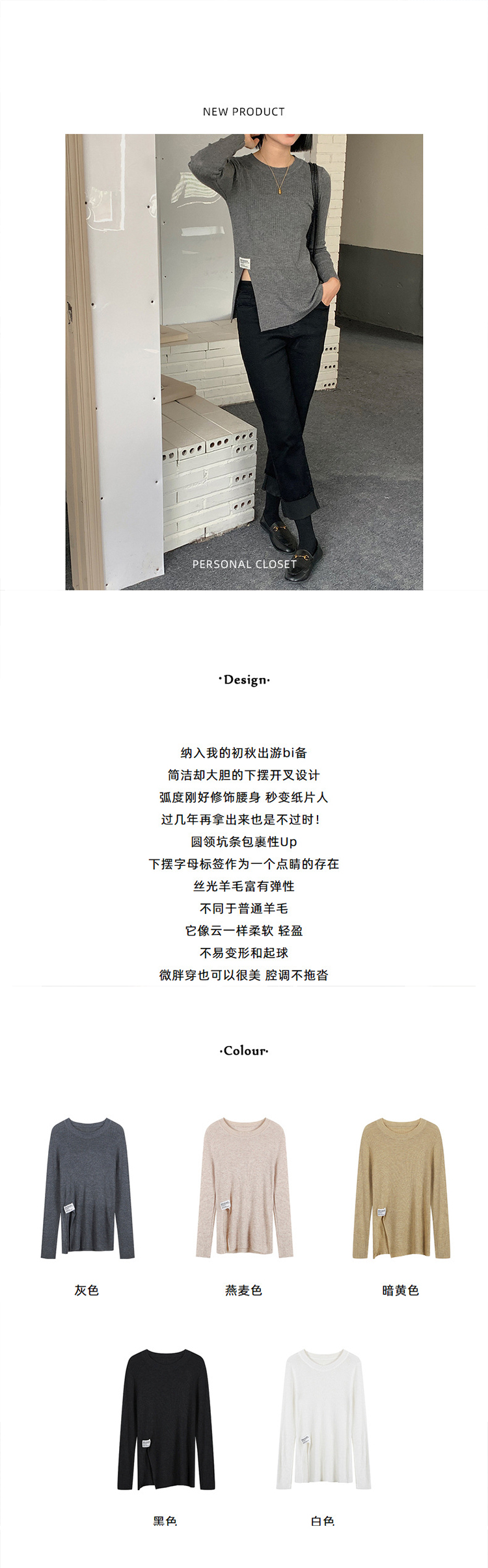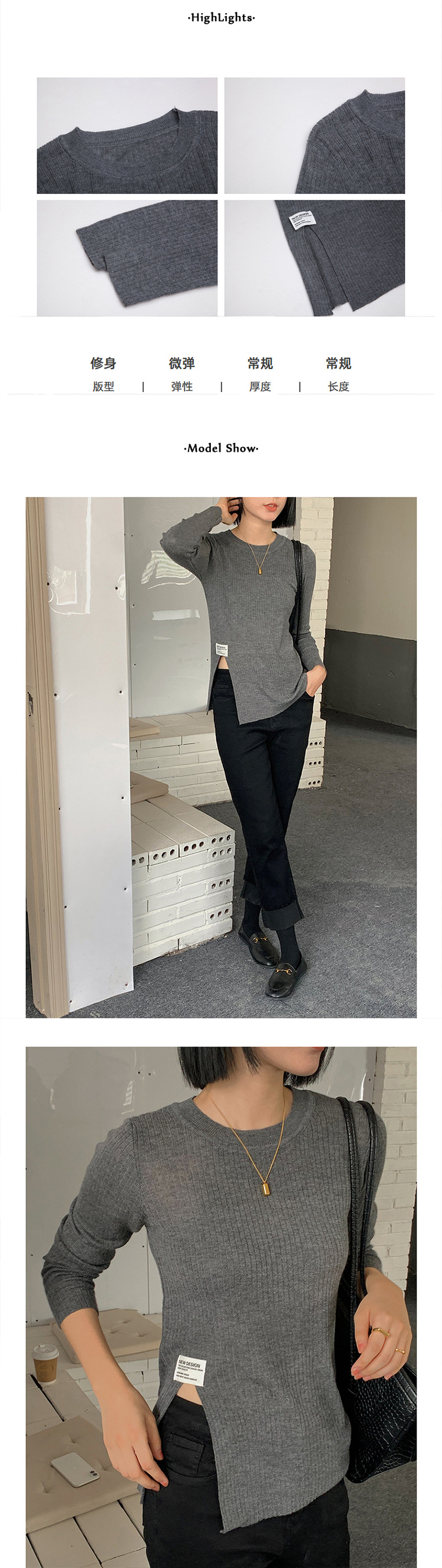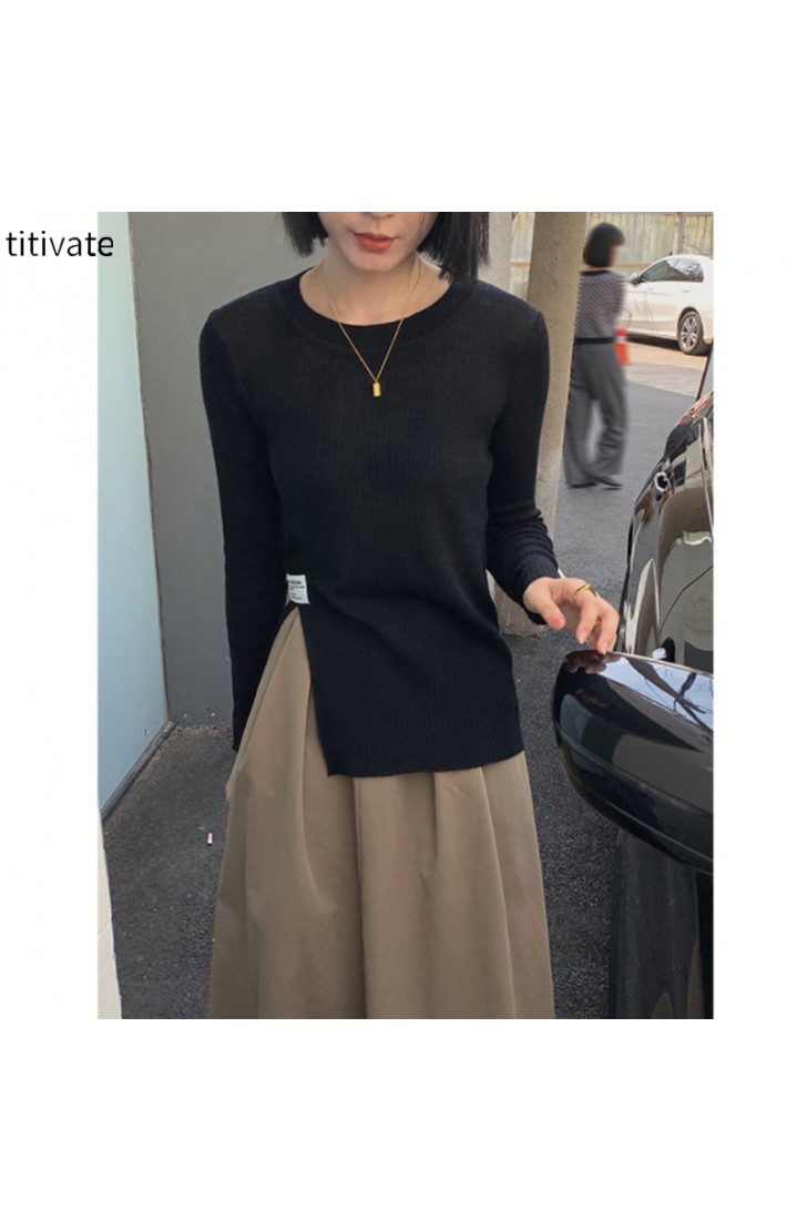 titivate开叉针织衫女设计感2021早秋新款修身圆领长袖上衣