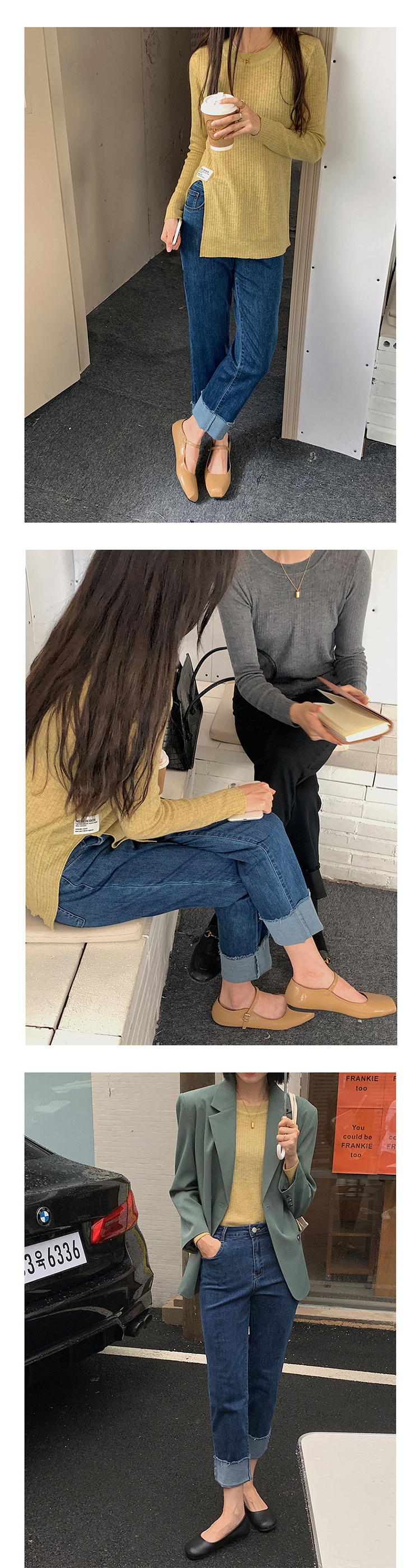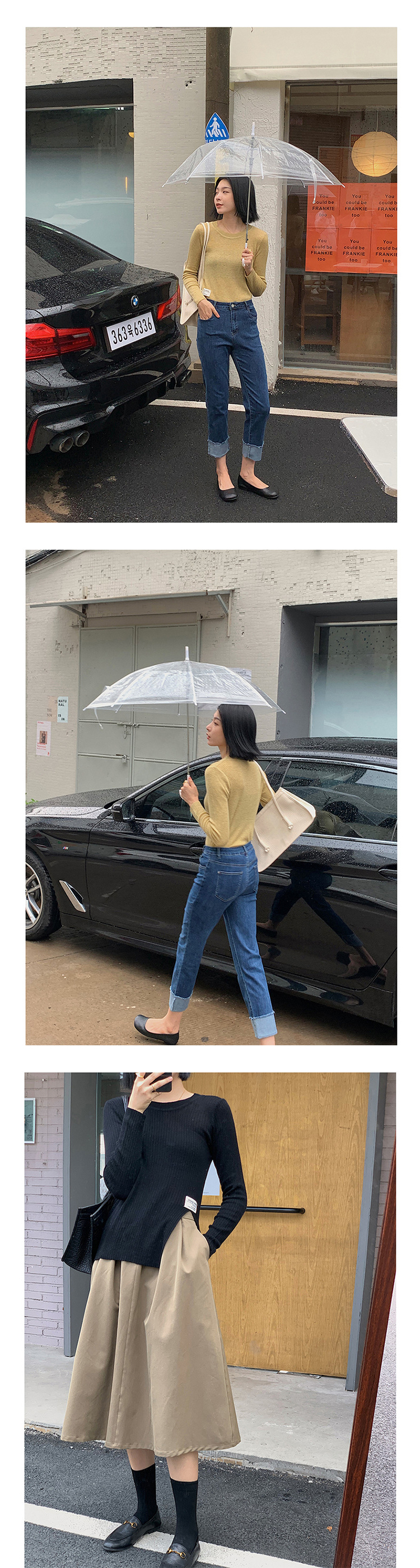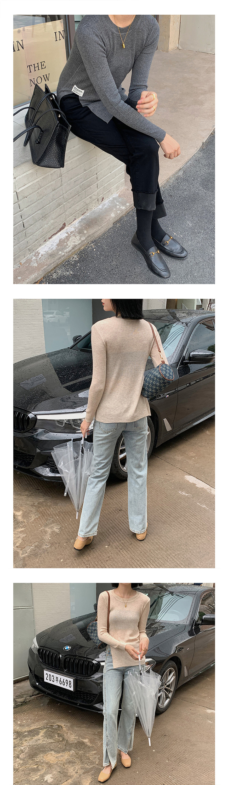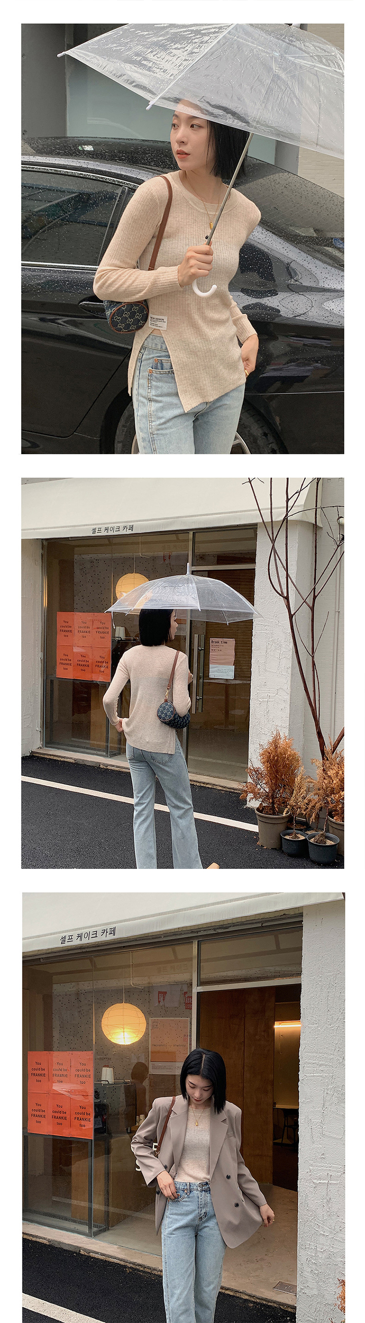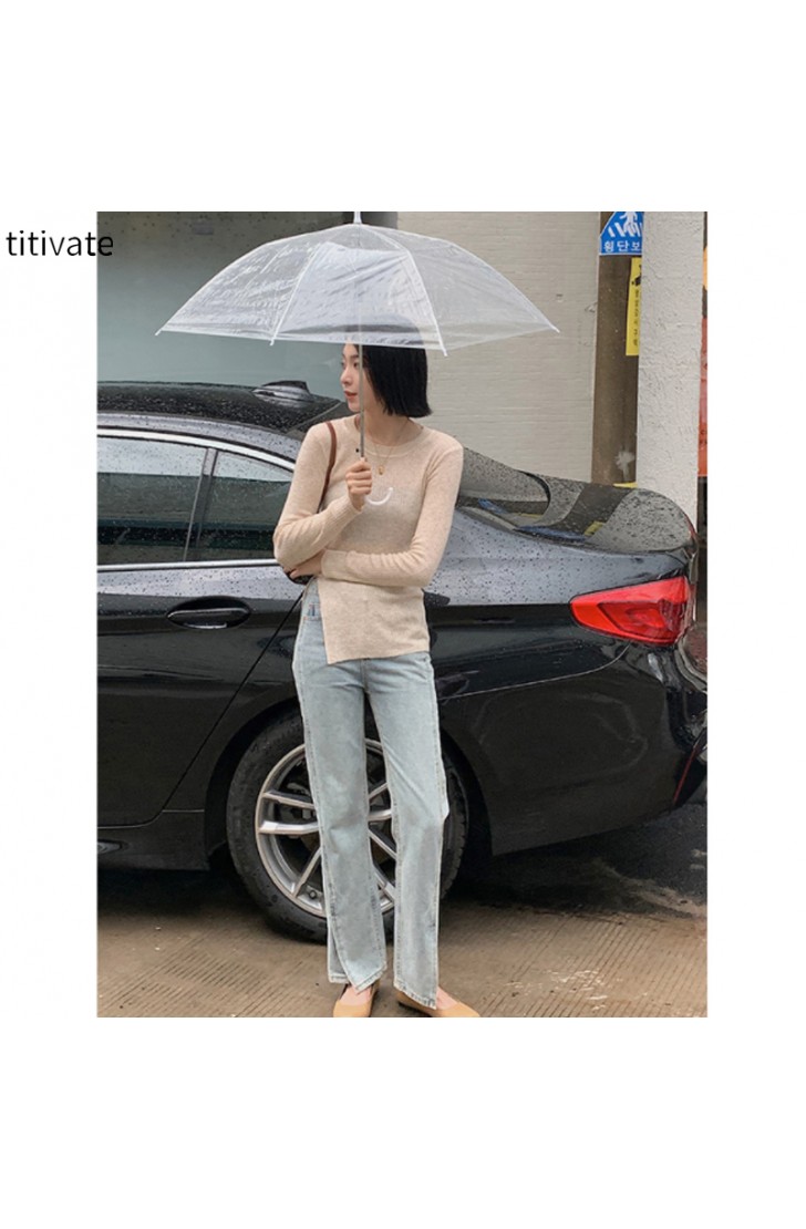 titivate开叉针织衫女设计感2021早秋新款修身圆领长袖上衣