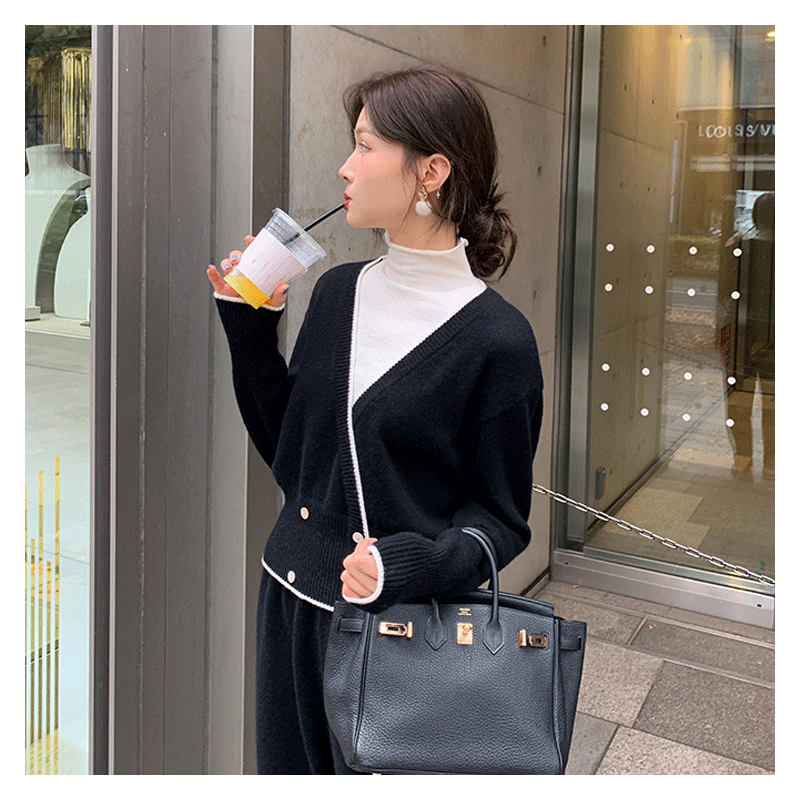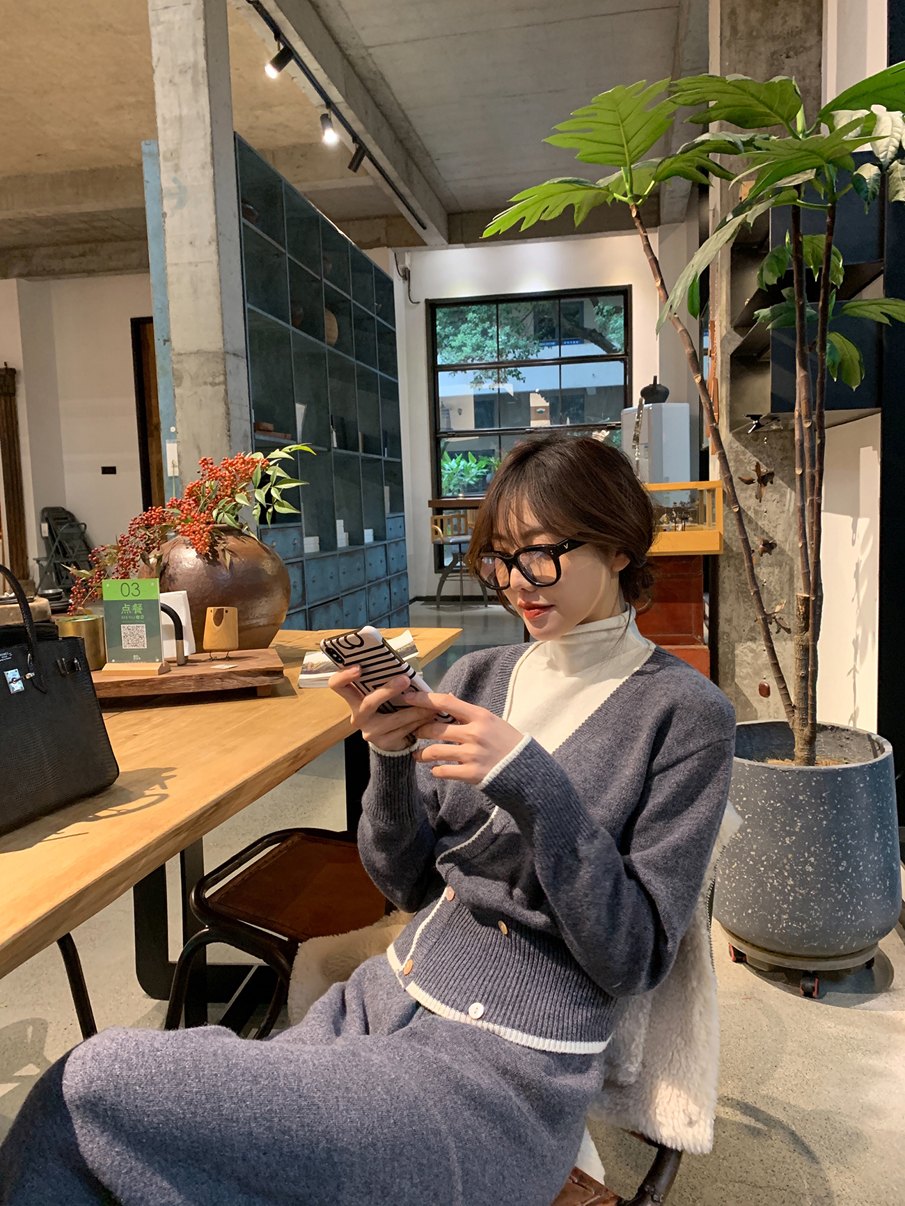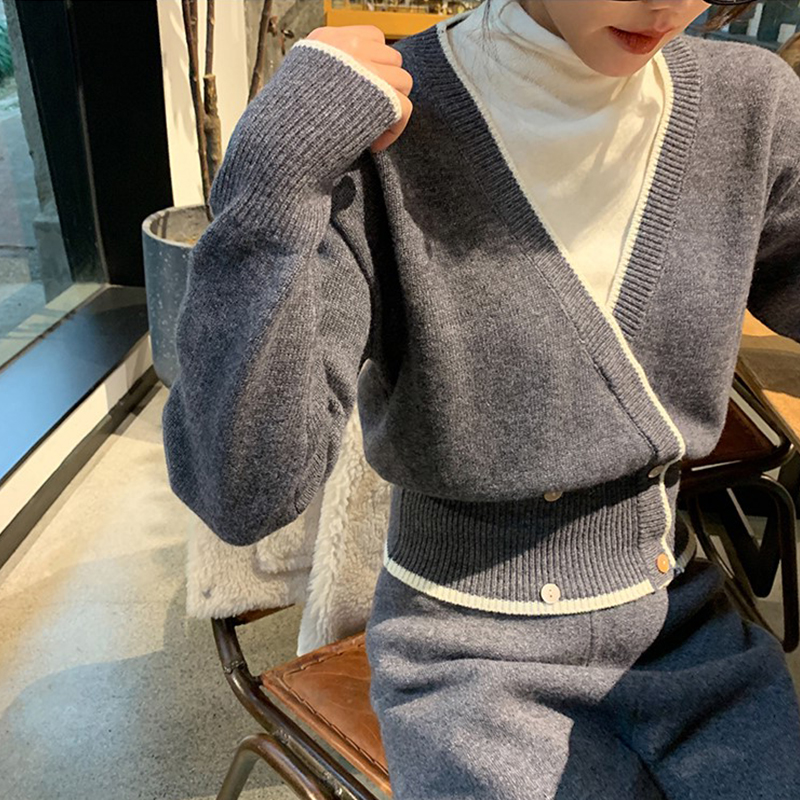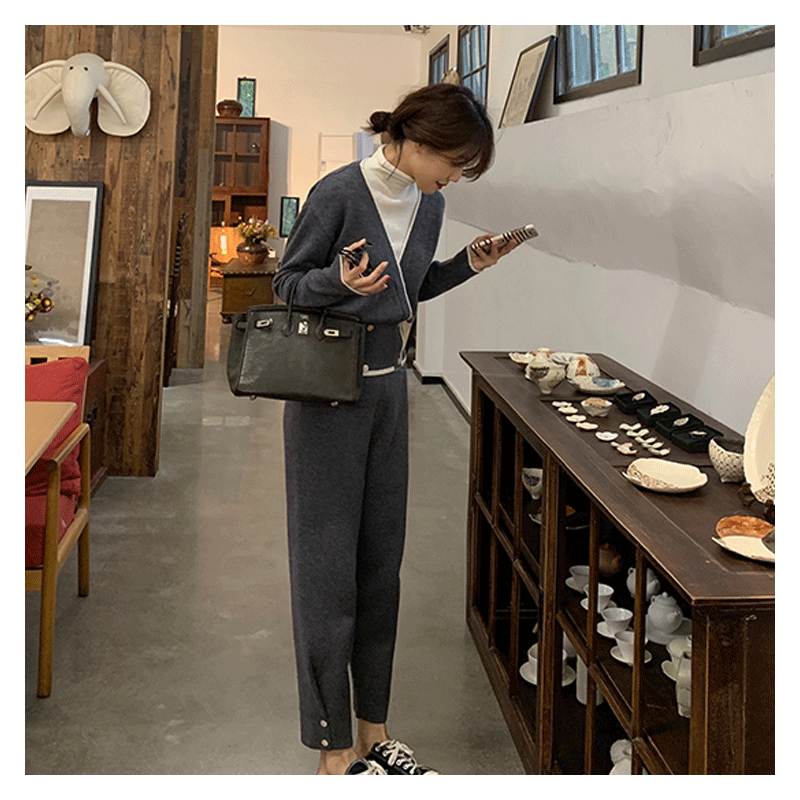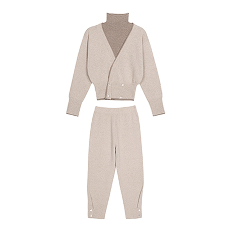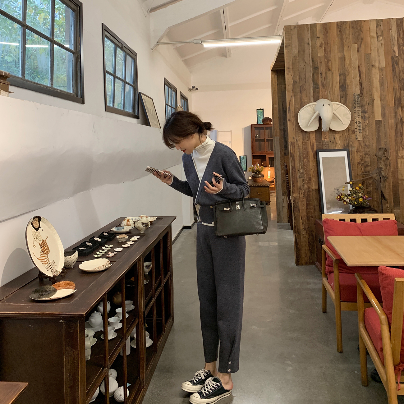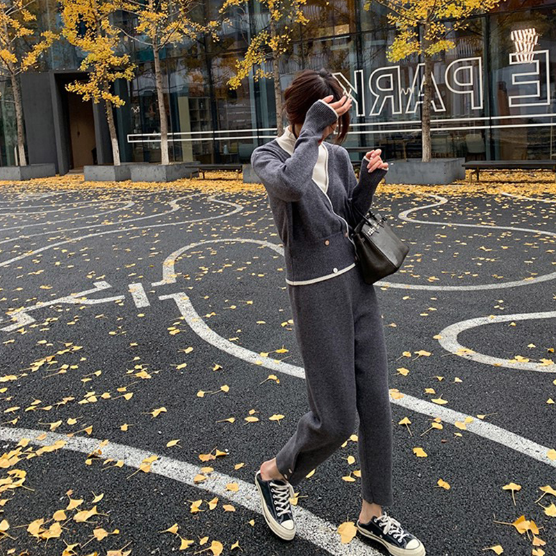 titivate毛衣针织衫新款假两件上衣时尚百搭休闲收口针织裤套装