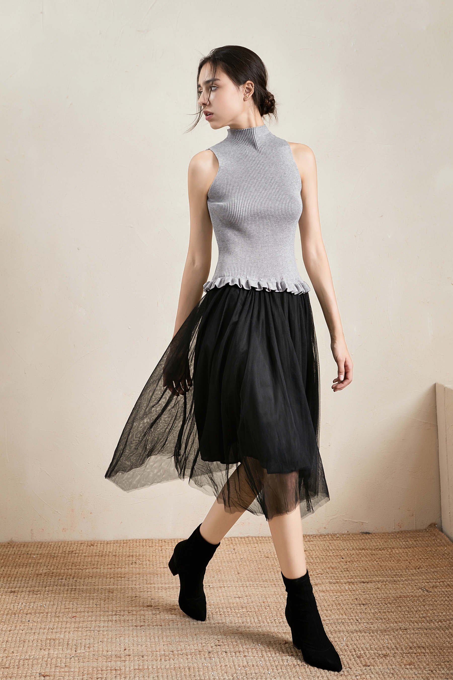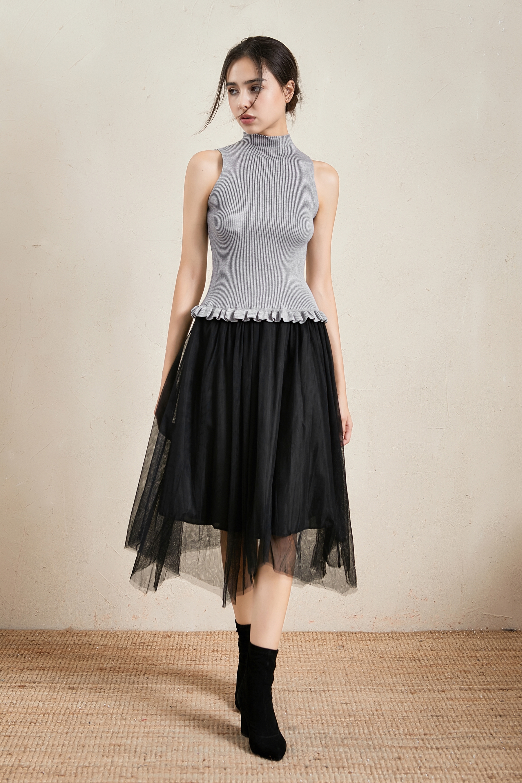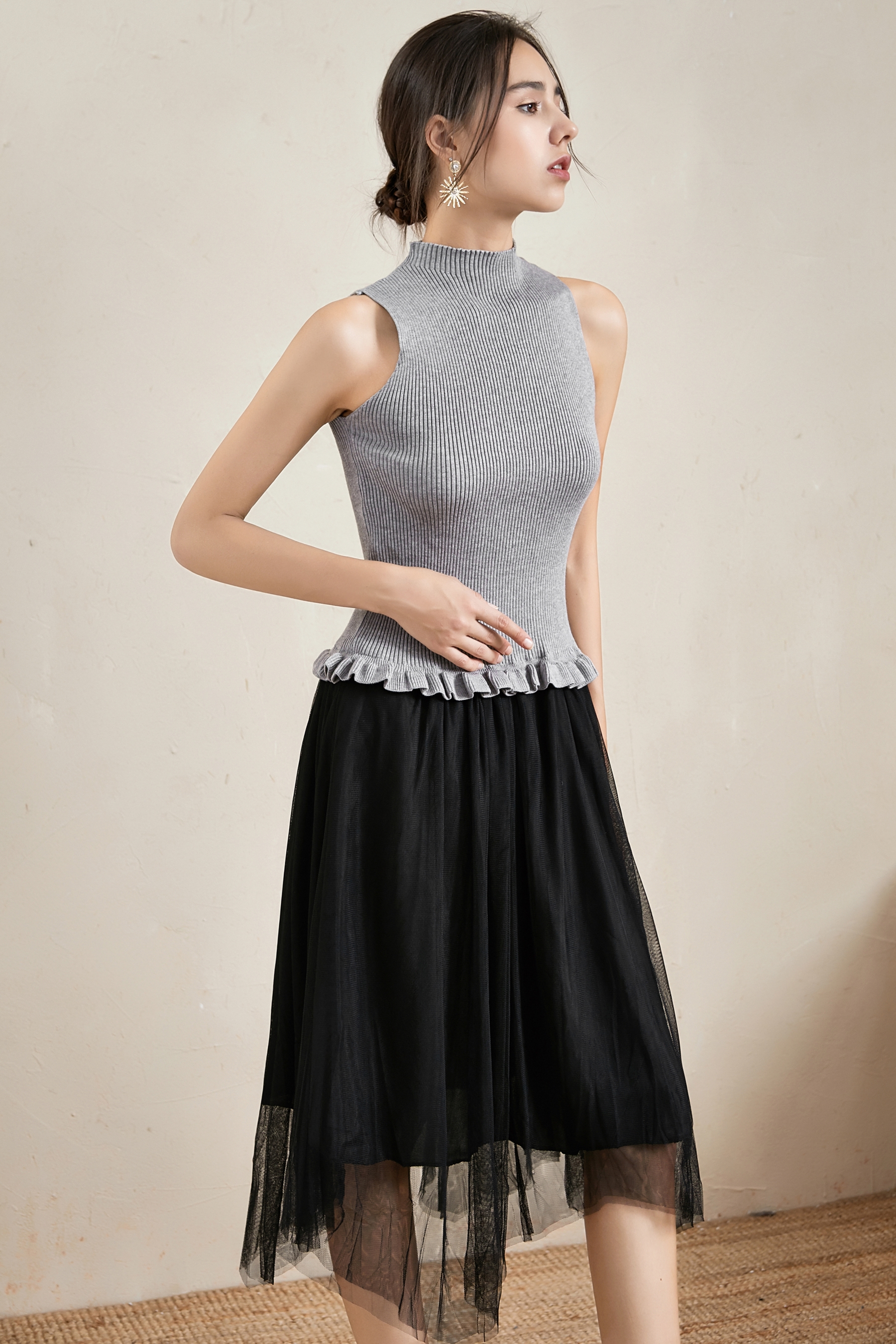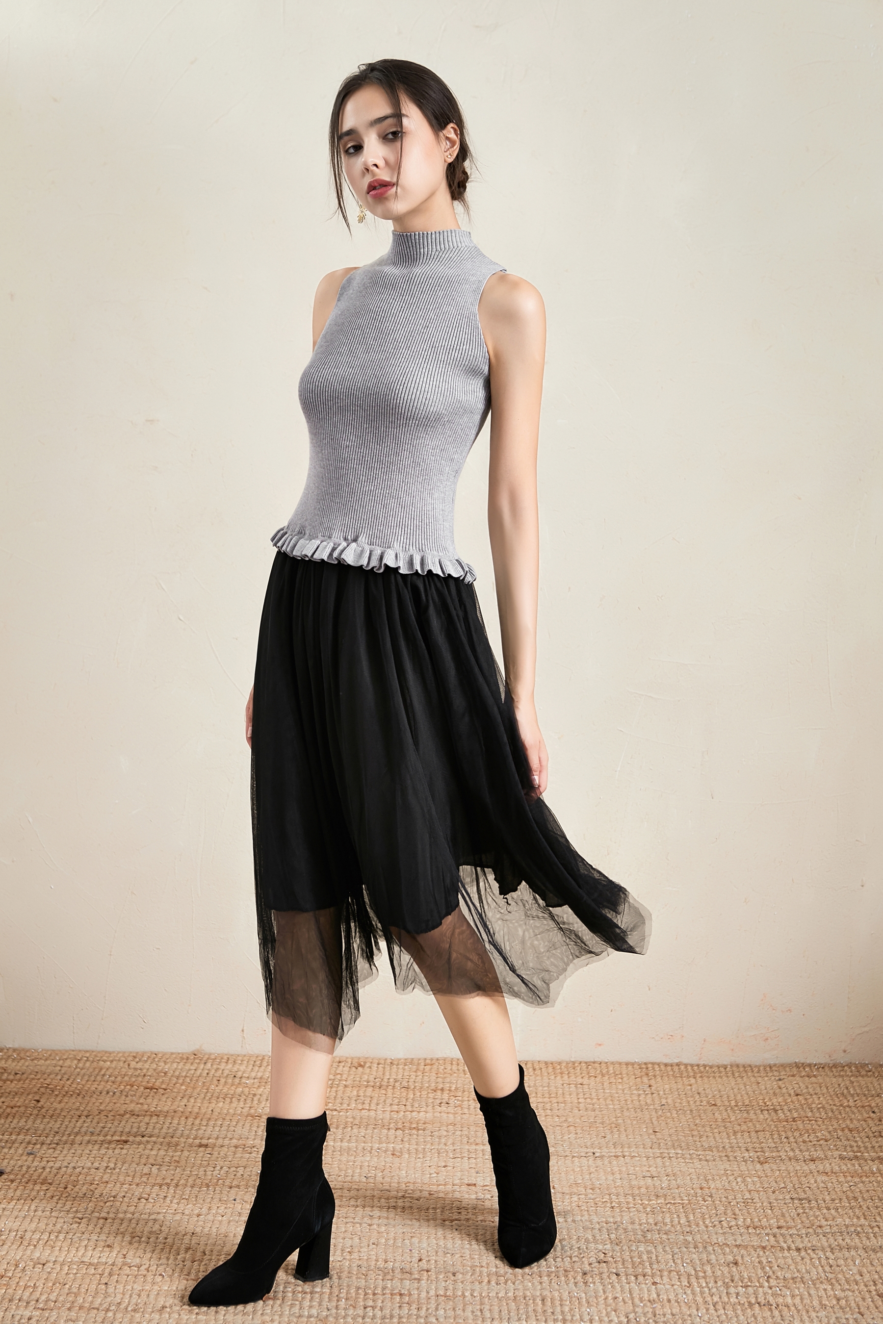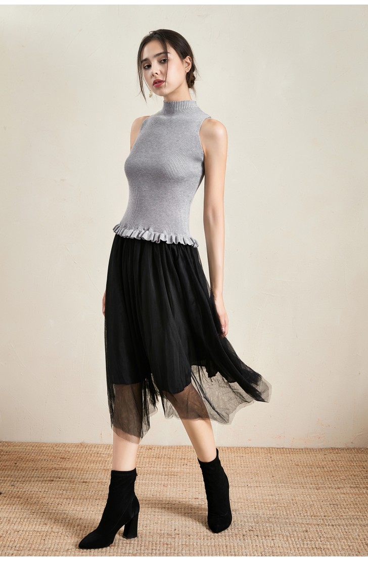 titivate针织连衣裙女2020新款气质洋气性感打底裙网纱针织连体裙