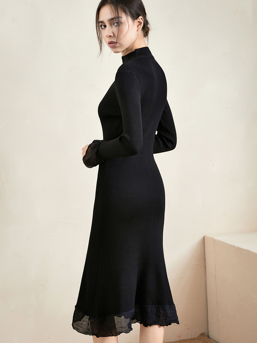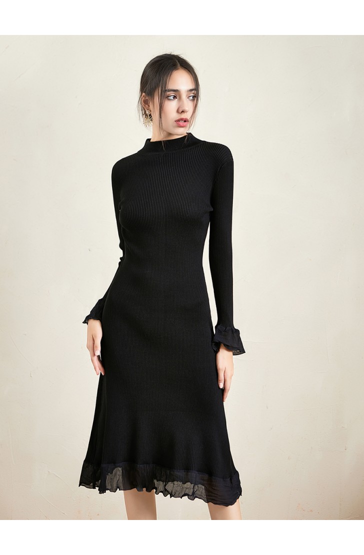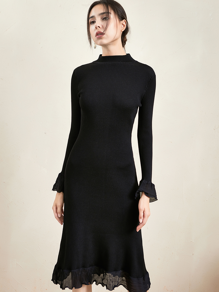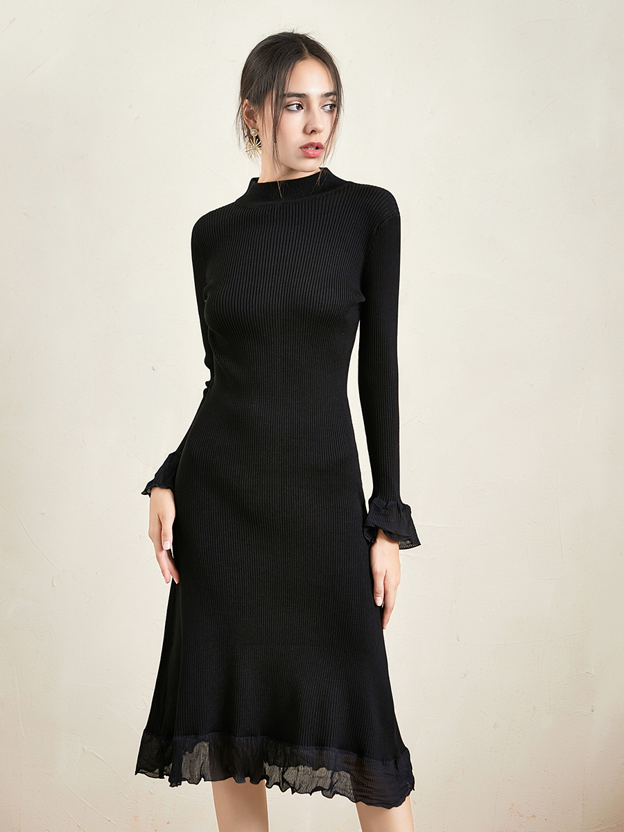 titivate针织连衣裙女秋冬新款半高领打底裙修身内搭中长款毛衣裙