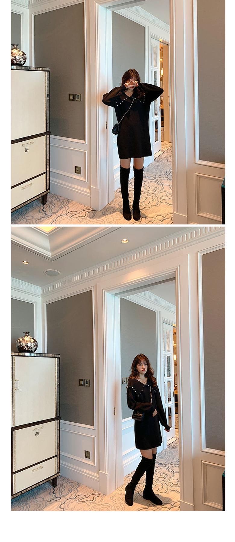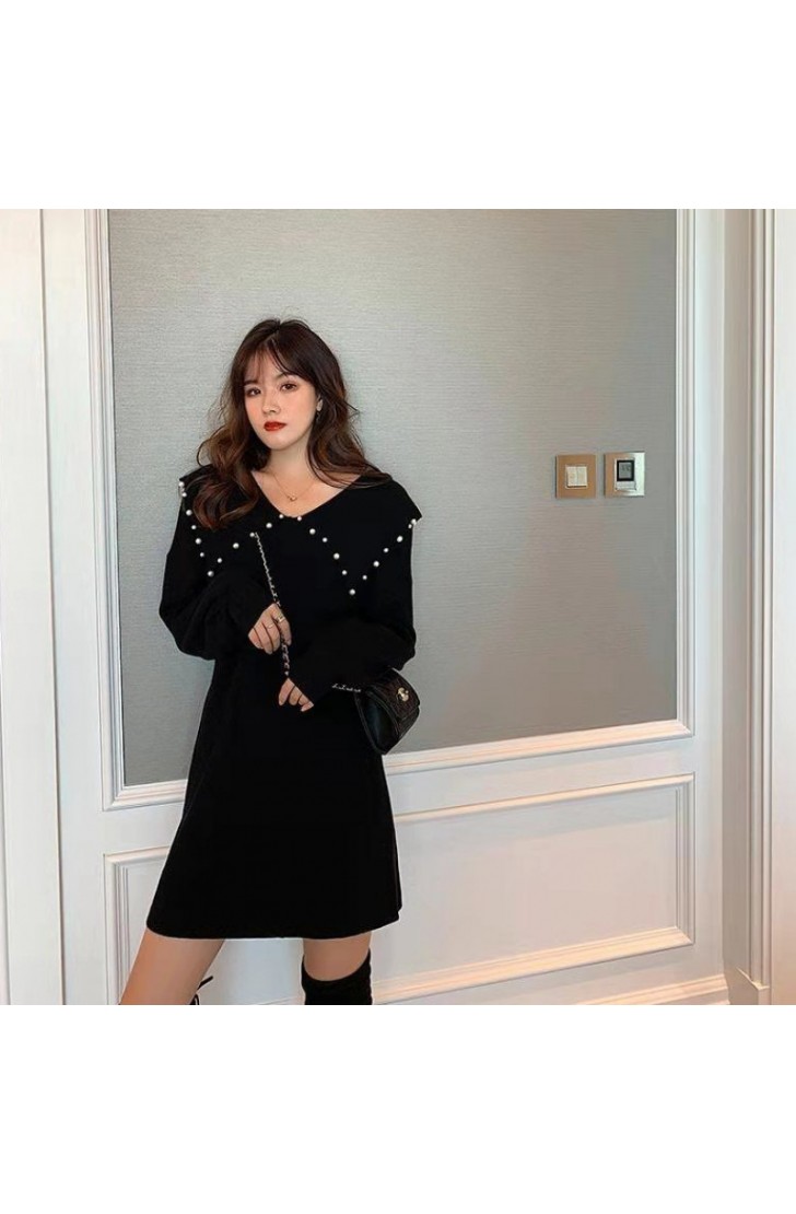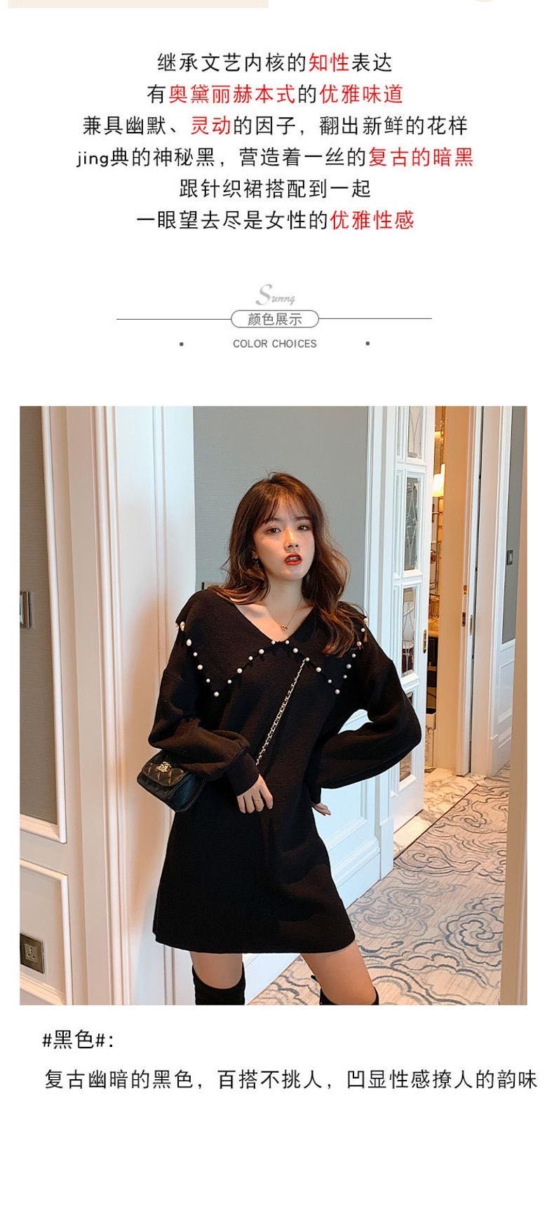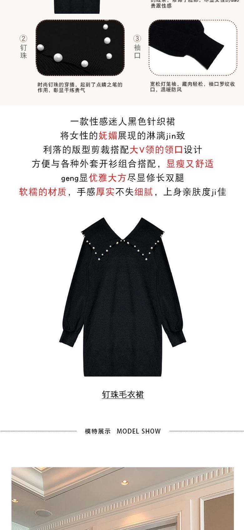 titivate大翻领针织裙女秋冬2020新款韩版宽松百搭中长款毛衣裙