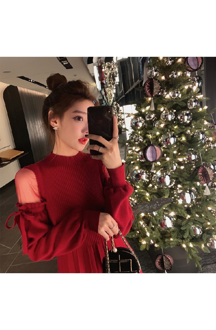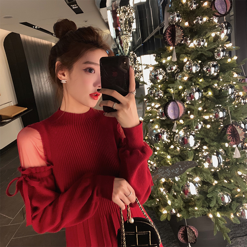 titivate针织连衣裙女装2020秋装新款显瘦时尚气质复古打底针织衫