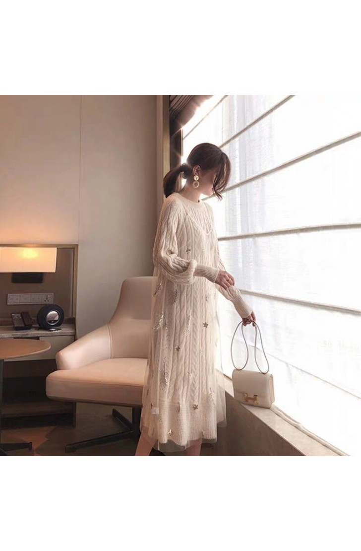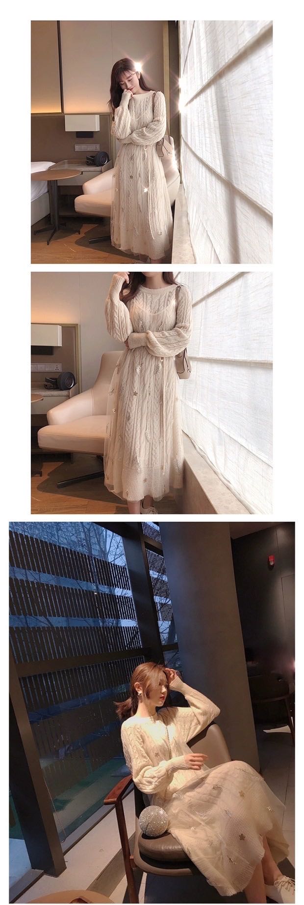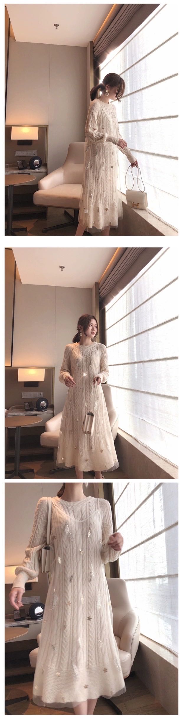 titivate针织长裙内搭打底毛衣连衣裙子女秋冬中长款过膝两件套连衣裙