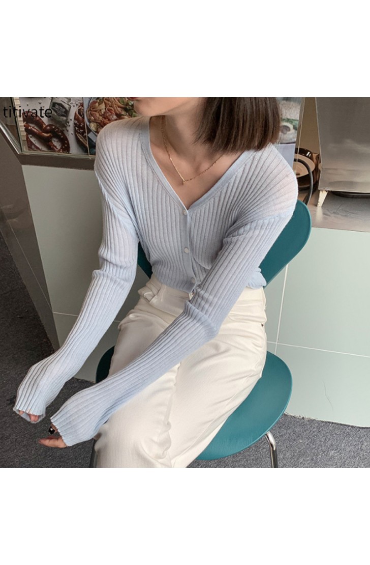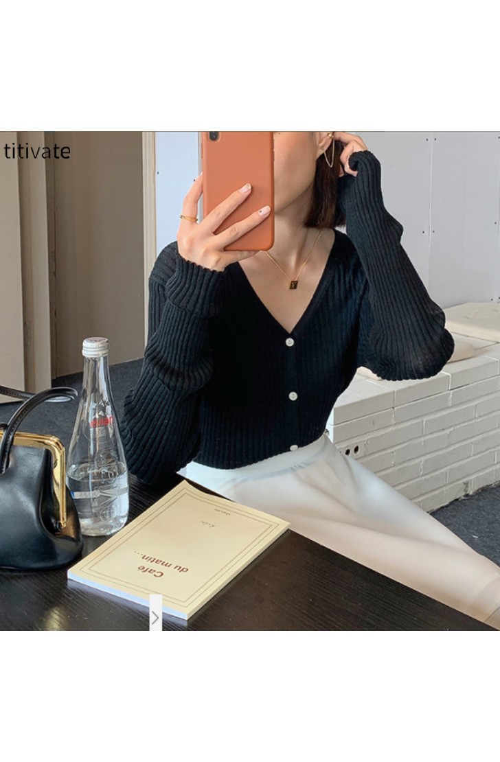 titivate羊毛针织开衫女2021秋季新款慵懒风长袖上衣外搭