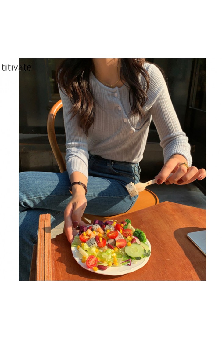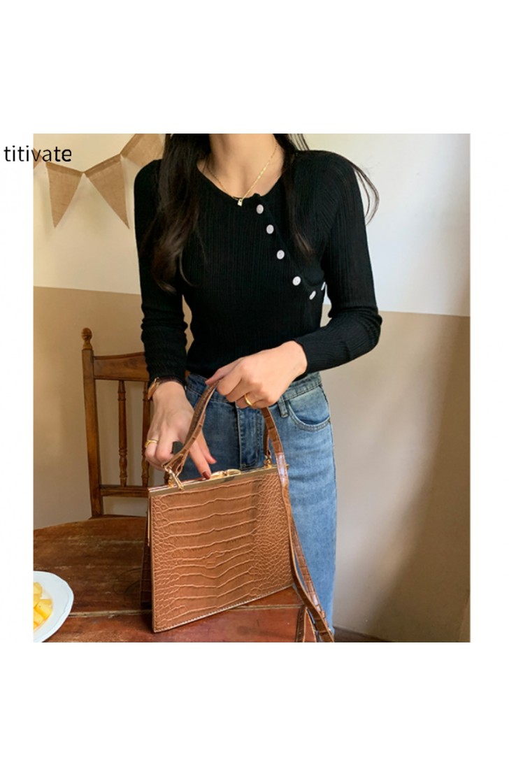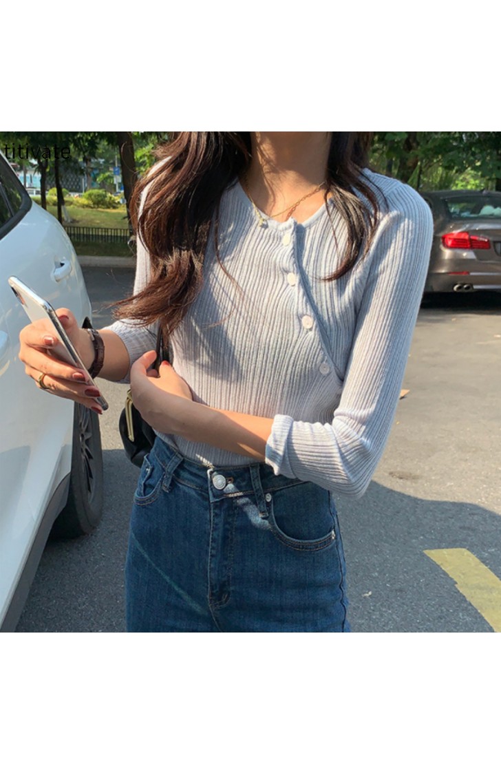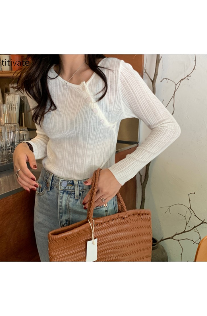titivate秋季长袖针织衫女圆领2021新款宽松慵懒上衣打底衫