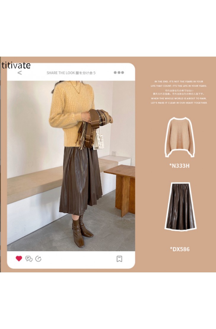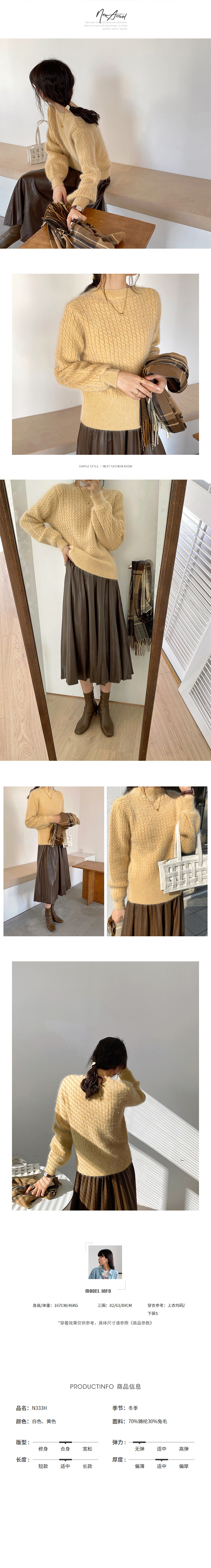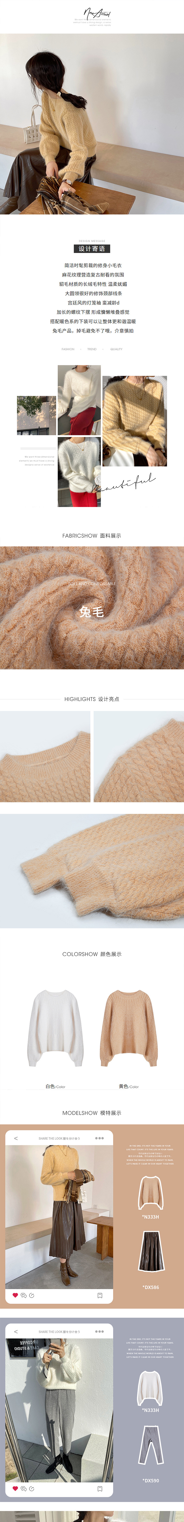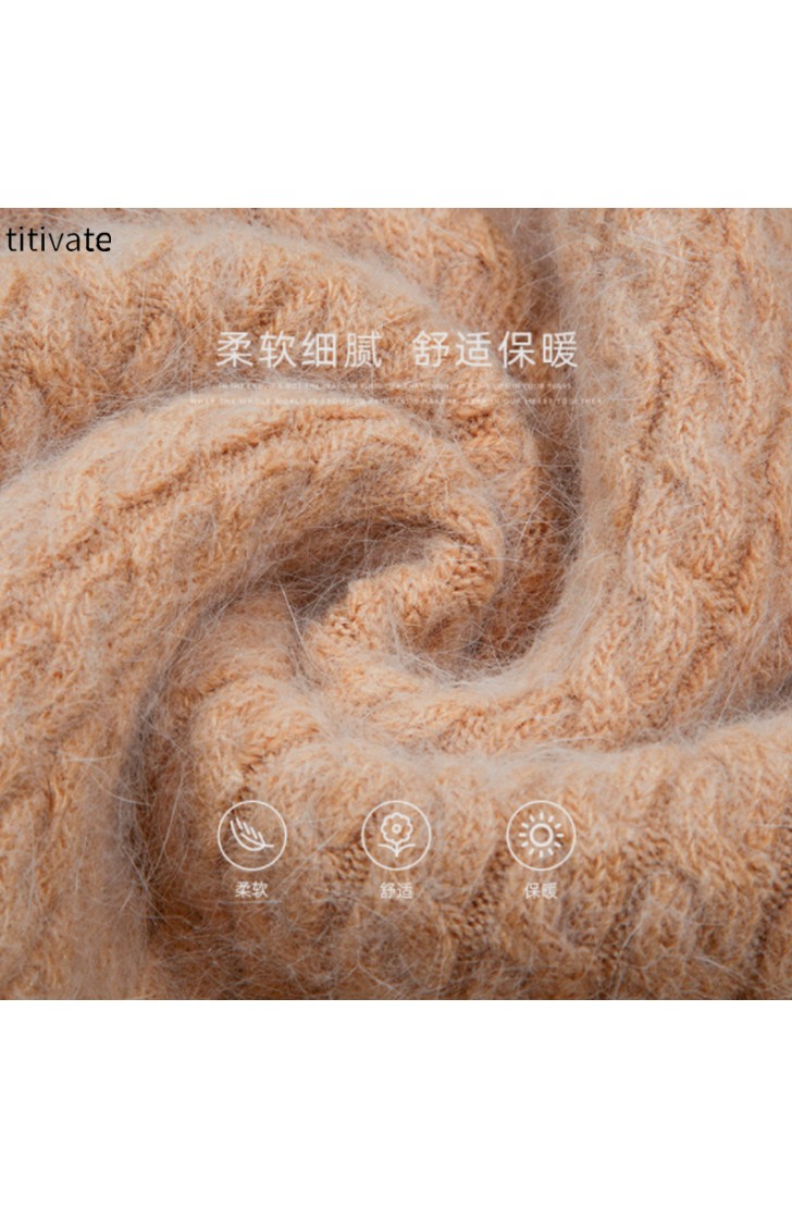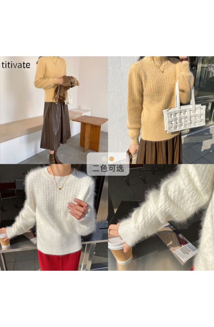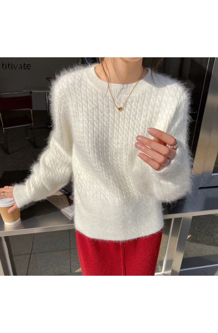 titivate兔毛麻花毛衣女秋冬新款宽松圆领毛绒针织上衣