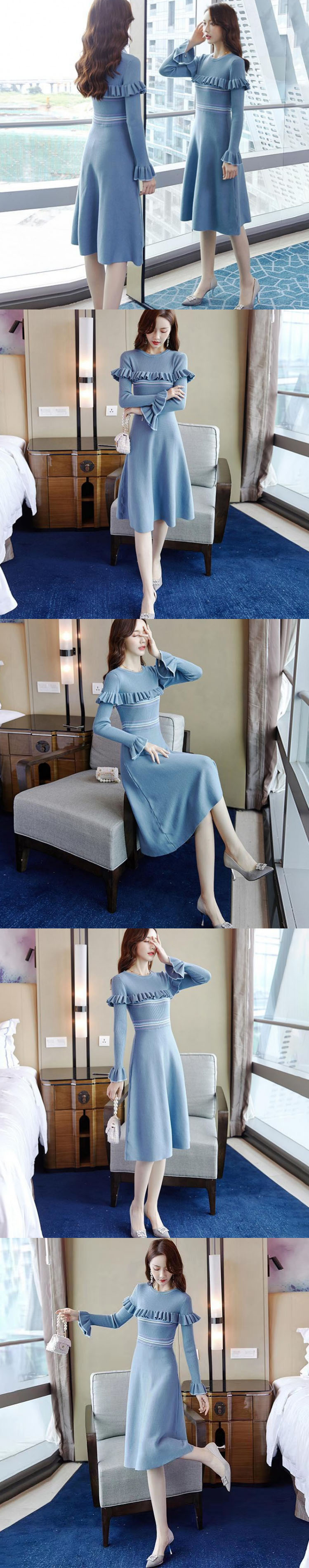 titivate中长款针织连衣裙2020新款秋冬装修身显瘦时尚打底毛衣裙毛针织衫